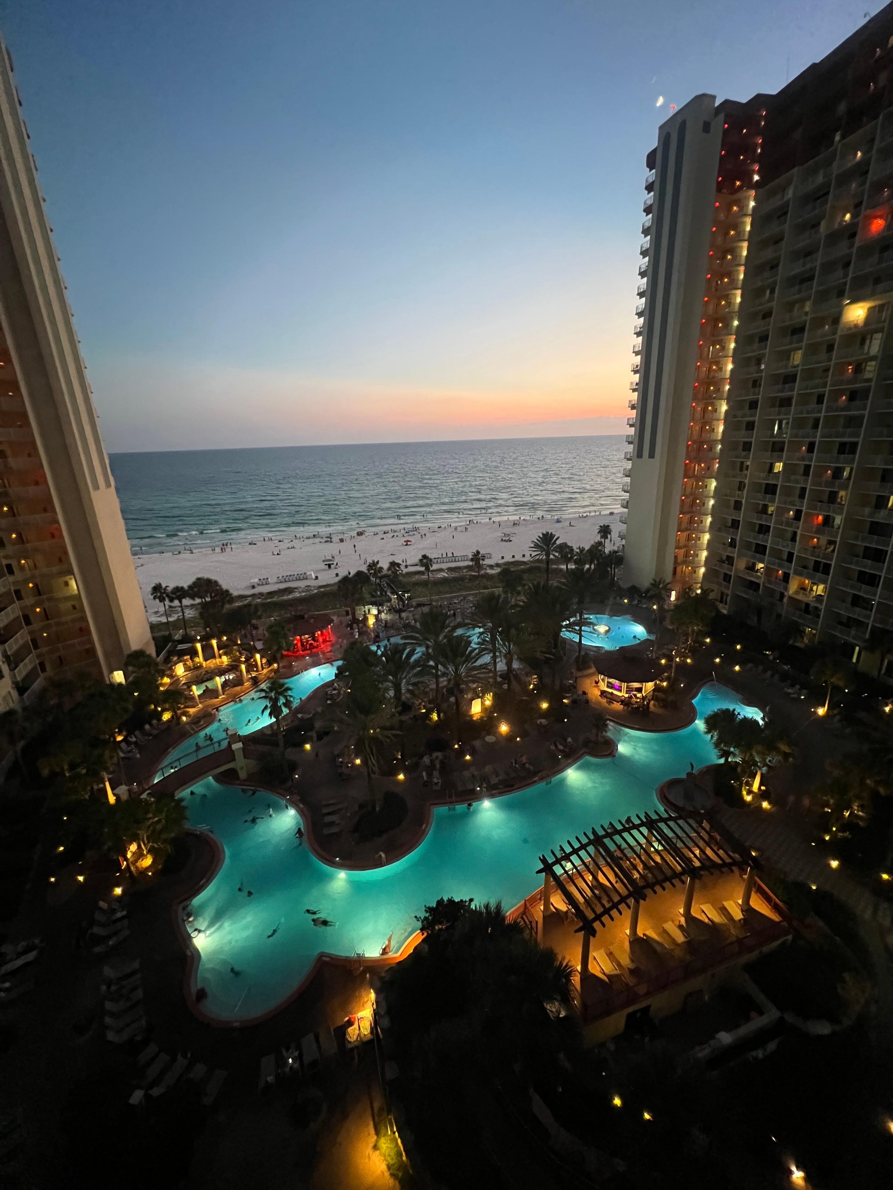 Book now and rent this amazing Ocean Front Unit! You and your family will enjoy the awesome views of the ocean and enormous pool. Deal direct with the owner and stay at this premier resort in Panama City Beach, Florida! We have one of the biggest pools and nicest resorts here in Panama City Beach. The unit comes with a spectacular balcony facing the beach with views of the ocean and pool. Wake up in the mornings in a magnificent master bedroom facing the ocean, with an en-suite master bath. The second bedroom has an attached bathroom with a shower. The third bedroom is a bunkroom with an attached 1/2 bathroom, great for the kids or young adults. The kitchen has granite counter tops, stainless steel appliances with 9 foot ceilings and tile through out bedrooms with over 1000 square feet of living space. You can even enjoy the view while cooking up something to eat in the kitchen. Walk to the living room, sit down and enjoy the ocean view or relax on the sleeper sofa. Then step out to the balcony, sit back and enjoy the view and listen to the waves of the beautiful ocean. After a little R and R go out and enjoy dinner with many great restaurants in the area, or eat at home and enjoy watching TV with our Free HBO, or streamline your favorite Netflix movies on our smart TV’s.