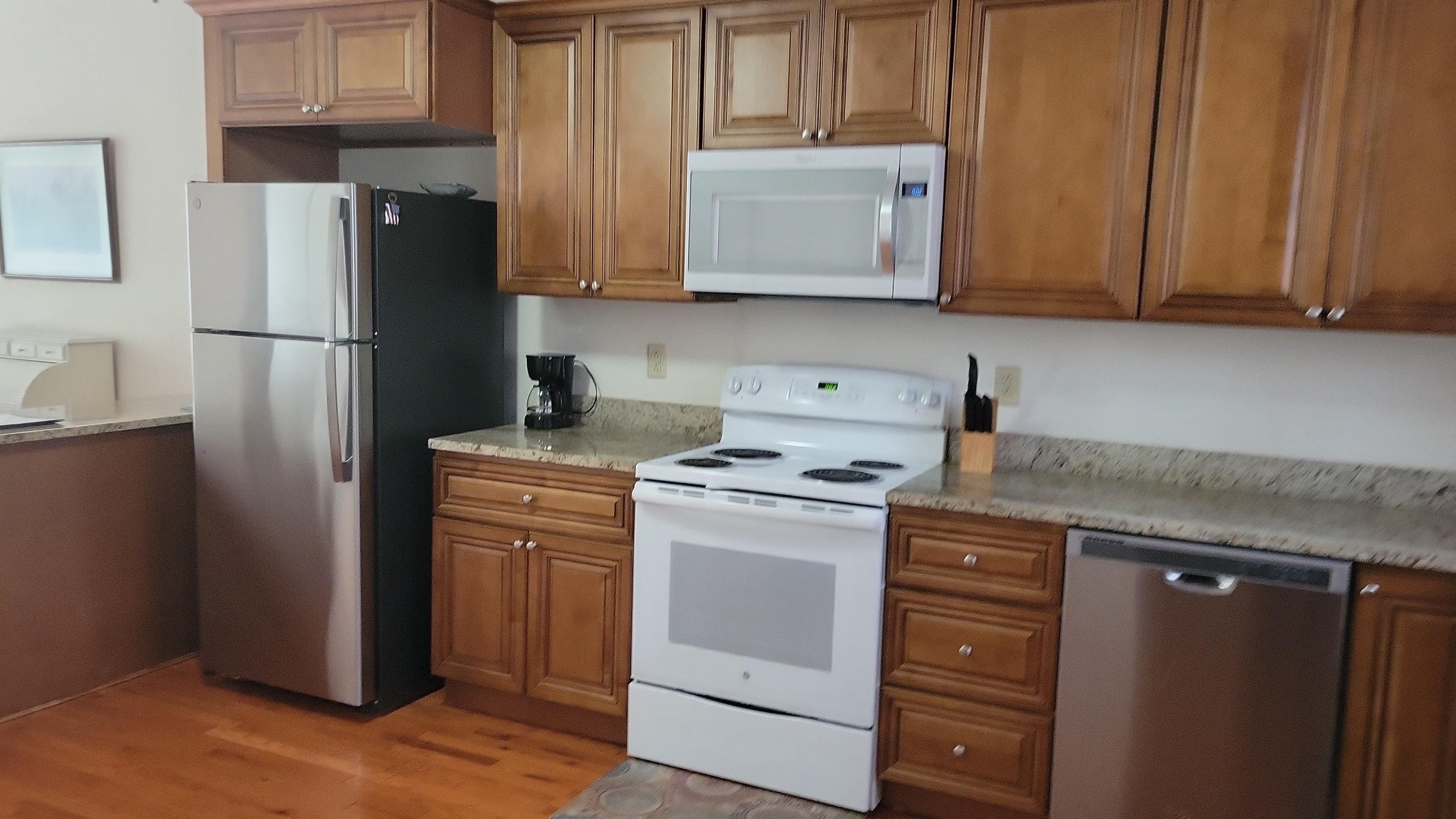 The Condo has all new Kitchen appliances. The living room has a 55 inch smart tv with basic cable, wifi! There is also a community grill that is available for use!