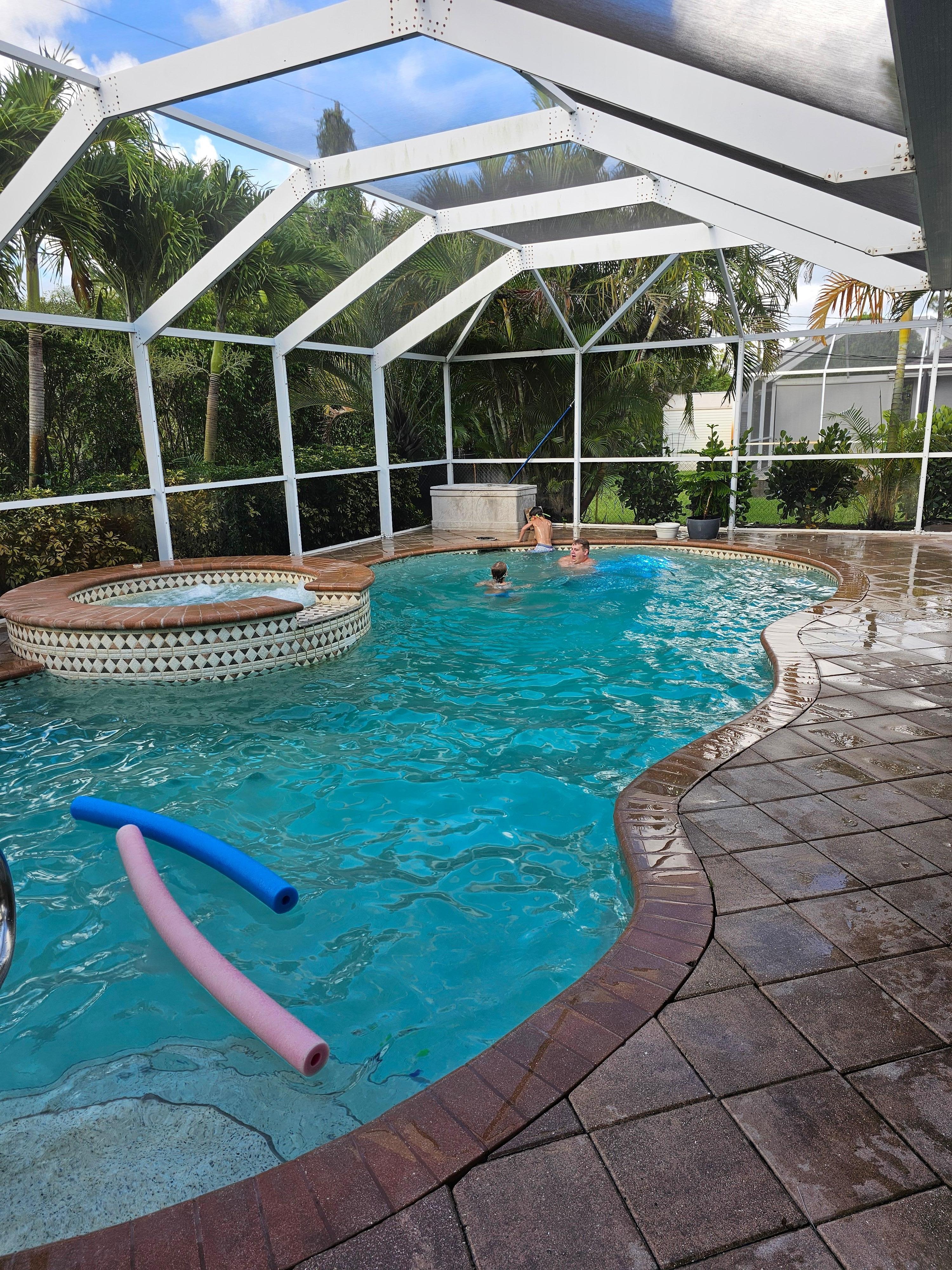 Private, heated pool and Jacuzzi surrounded by mature palm trees. Heating included in price!