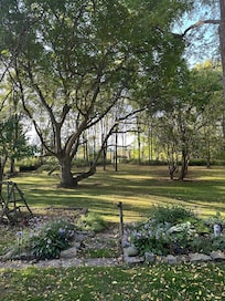 The screened-in back porch is a great place to relax and survey the rambling back lawn and surrounding orchards. It's also perfect for a candle-lit dinner while sipping local wine.