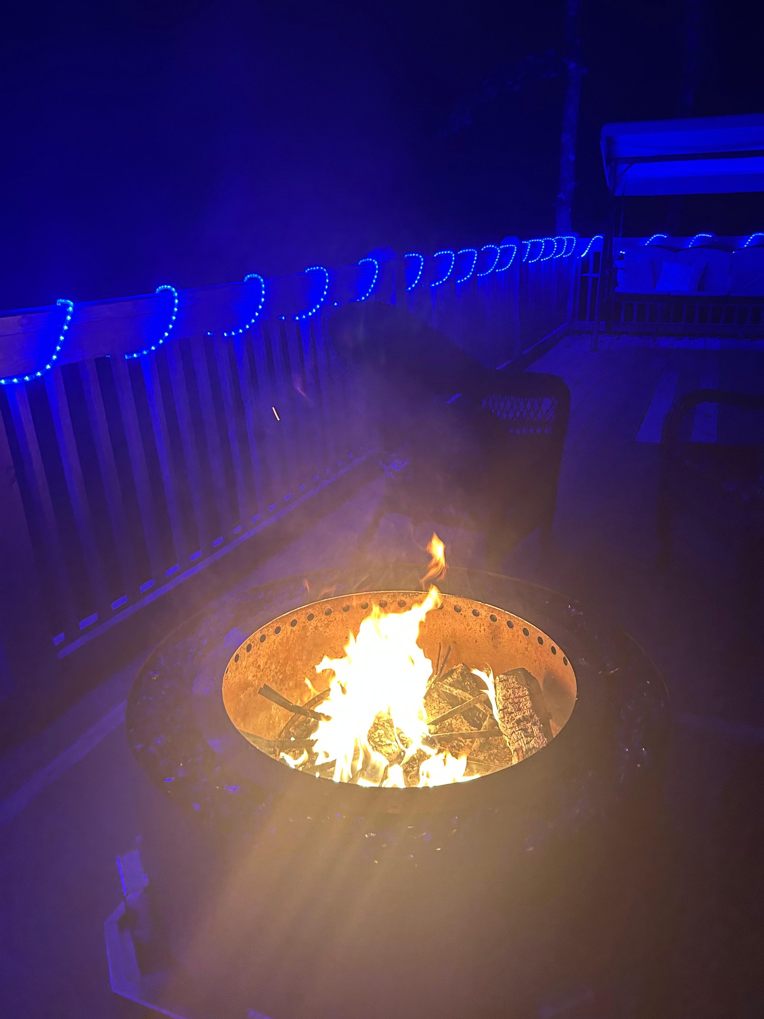 On the front side of your cabin is a Porch where you can experience the other Fire Pit with Surrounding Chairs, & the Forest..