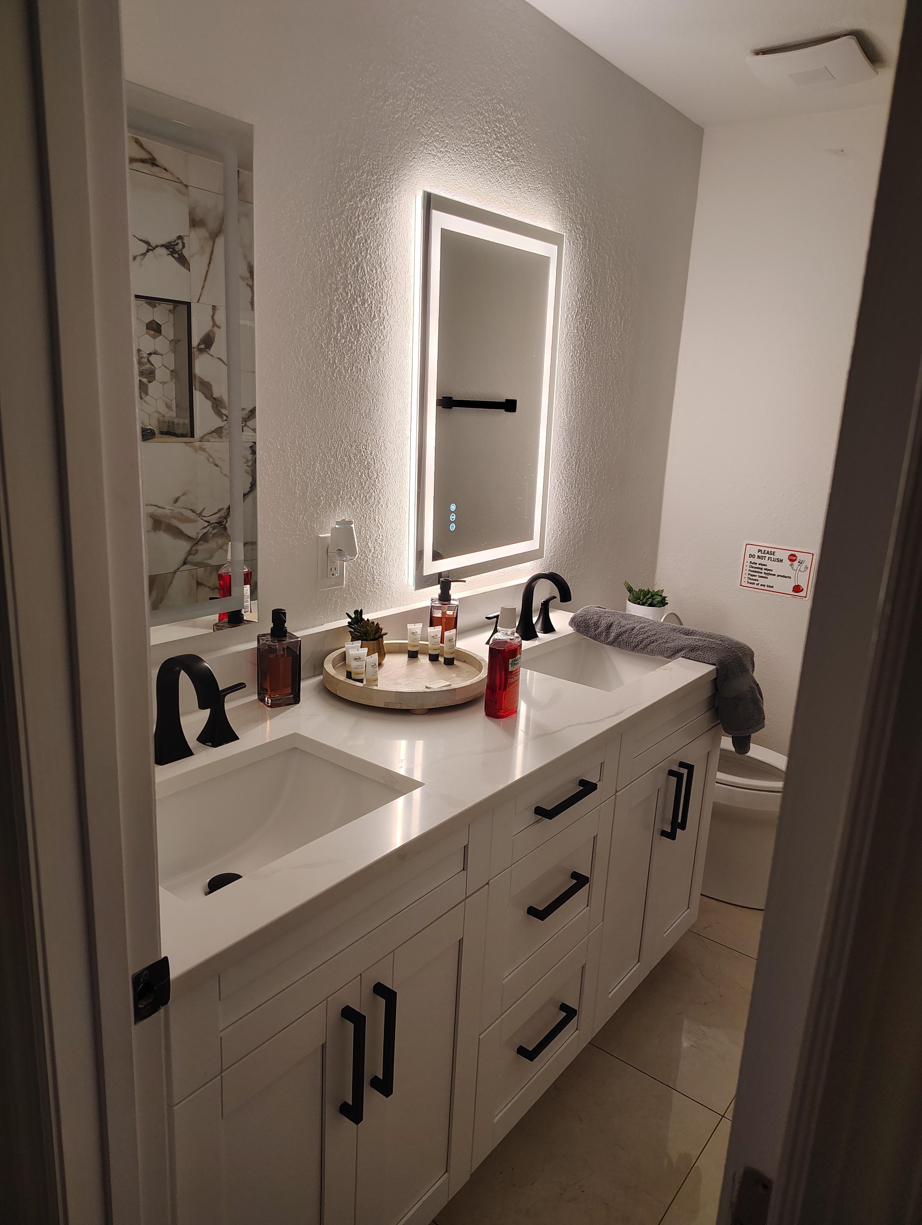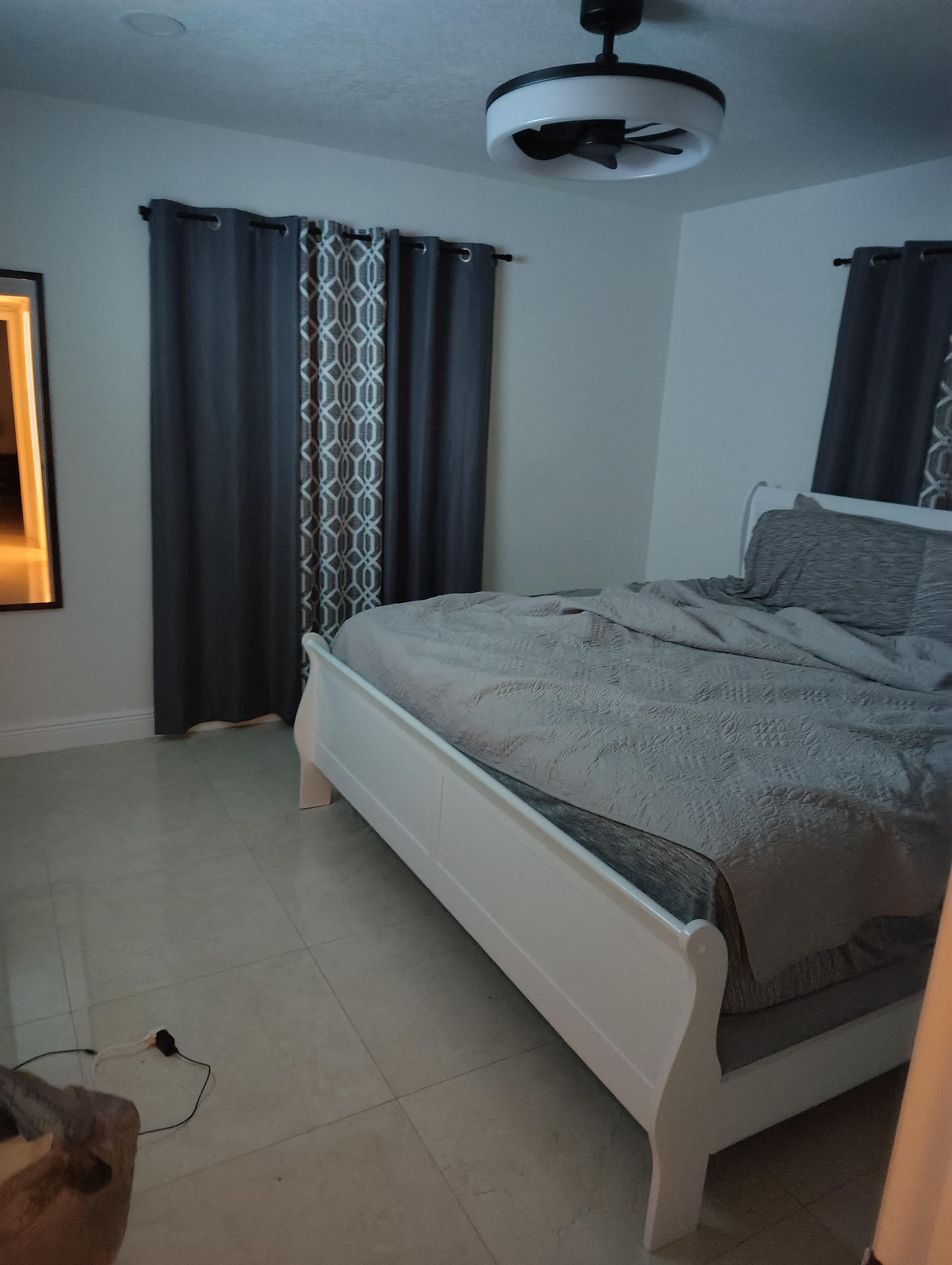 The house was immaculately clean , spacious rooms , plenty of parking space., modern appliances in the kitchen, TV in every room , laundry room and dishwasher. Bathroom was amazing with a his and her sink with lighted vanity mirrors . Host just needs to clean up the back yard area so guests can have a relaxing area to get fresh air and smoke if they decide.