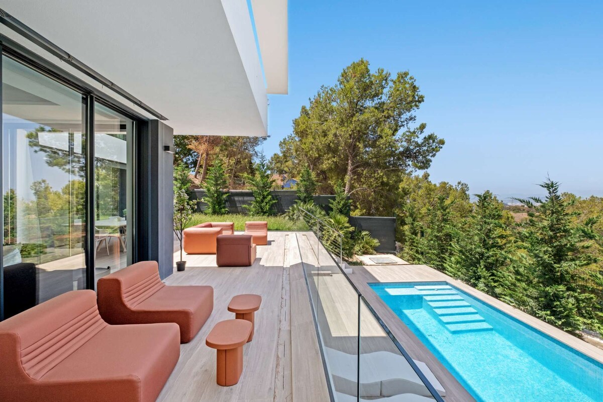 Brand new spacious 6-bedroom villa with saltwater pool, sea, city, and mountain views.