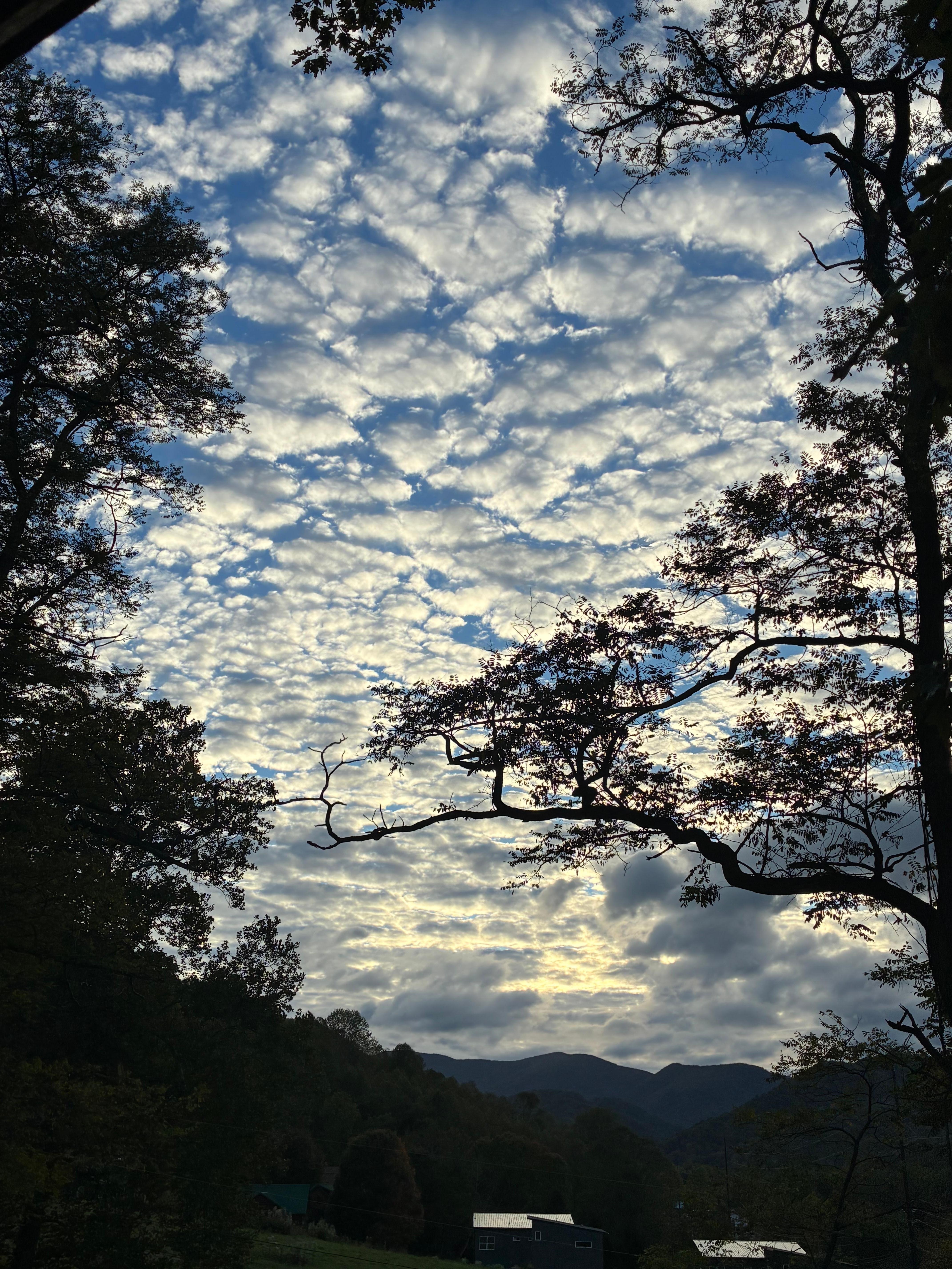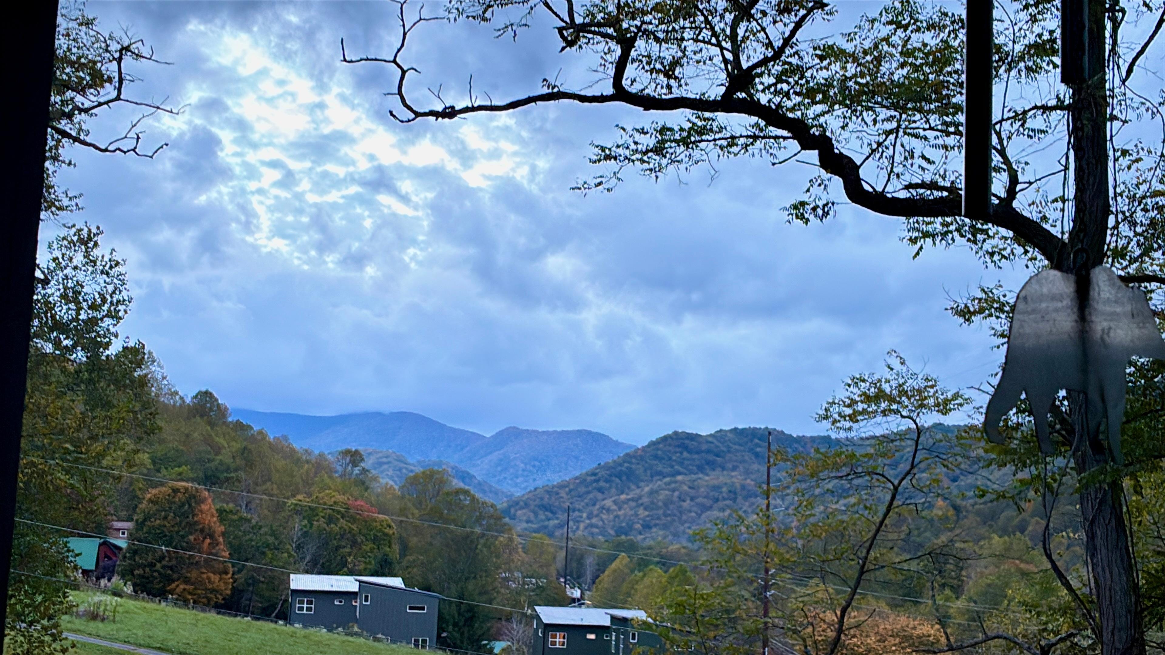 PEACEFUL mountain views from the front porch. The cabin offers guests a gas fireplace, a covered pavilion with a propane grill and outdoor kitchen with picnic tables, washer & dryer w/complimentary detergent, WIFI, and a SmartTV in the living room.