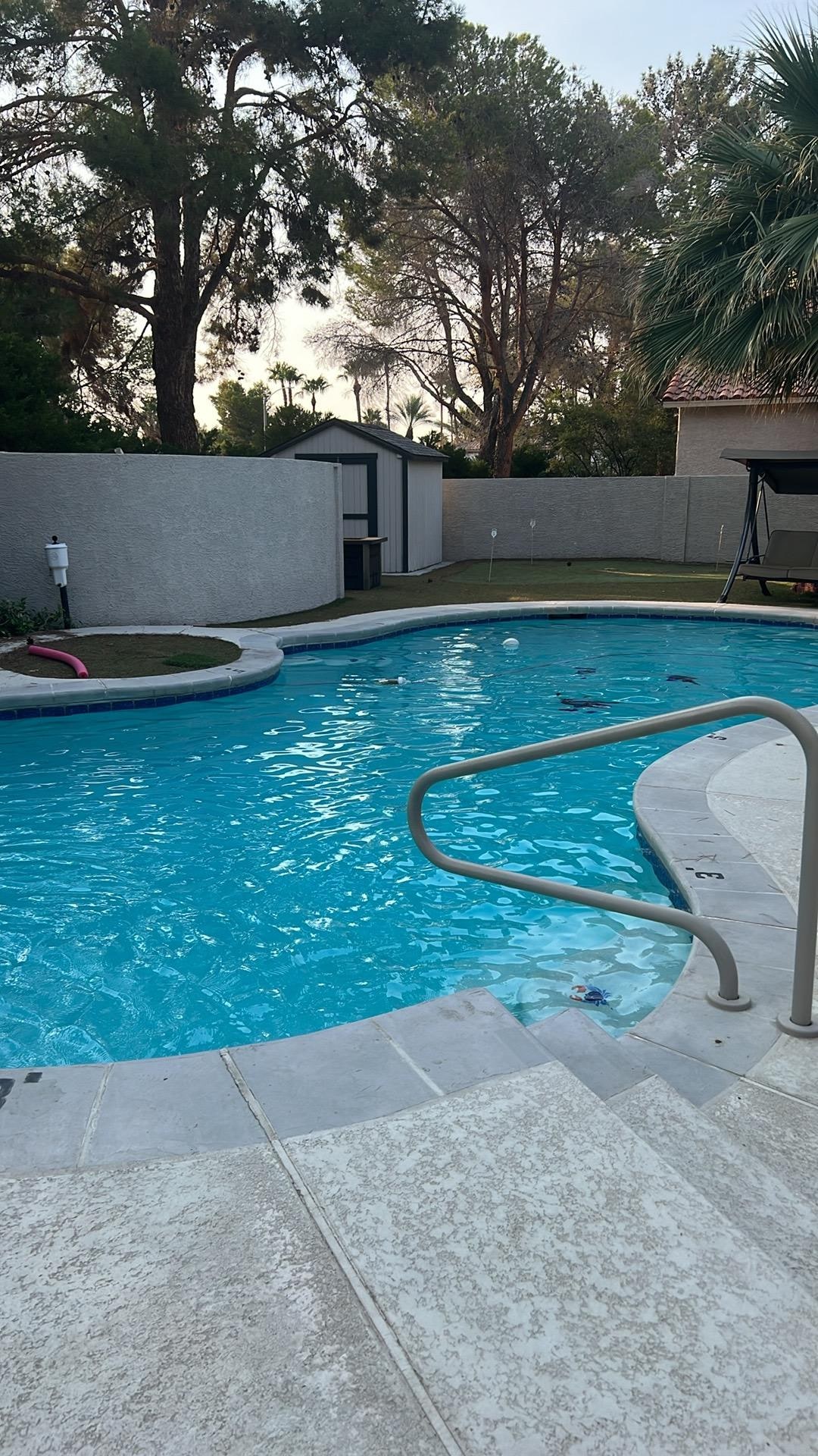 clean, private, fantastic yard landscape with mini golf, in yard outdoor pool & spa.