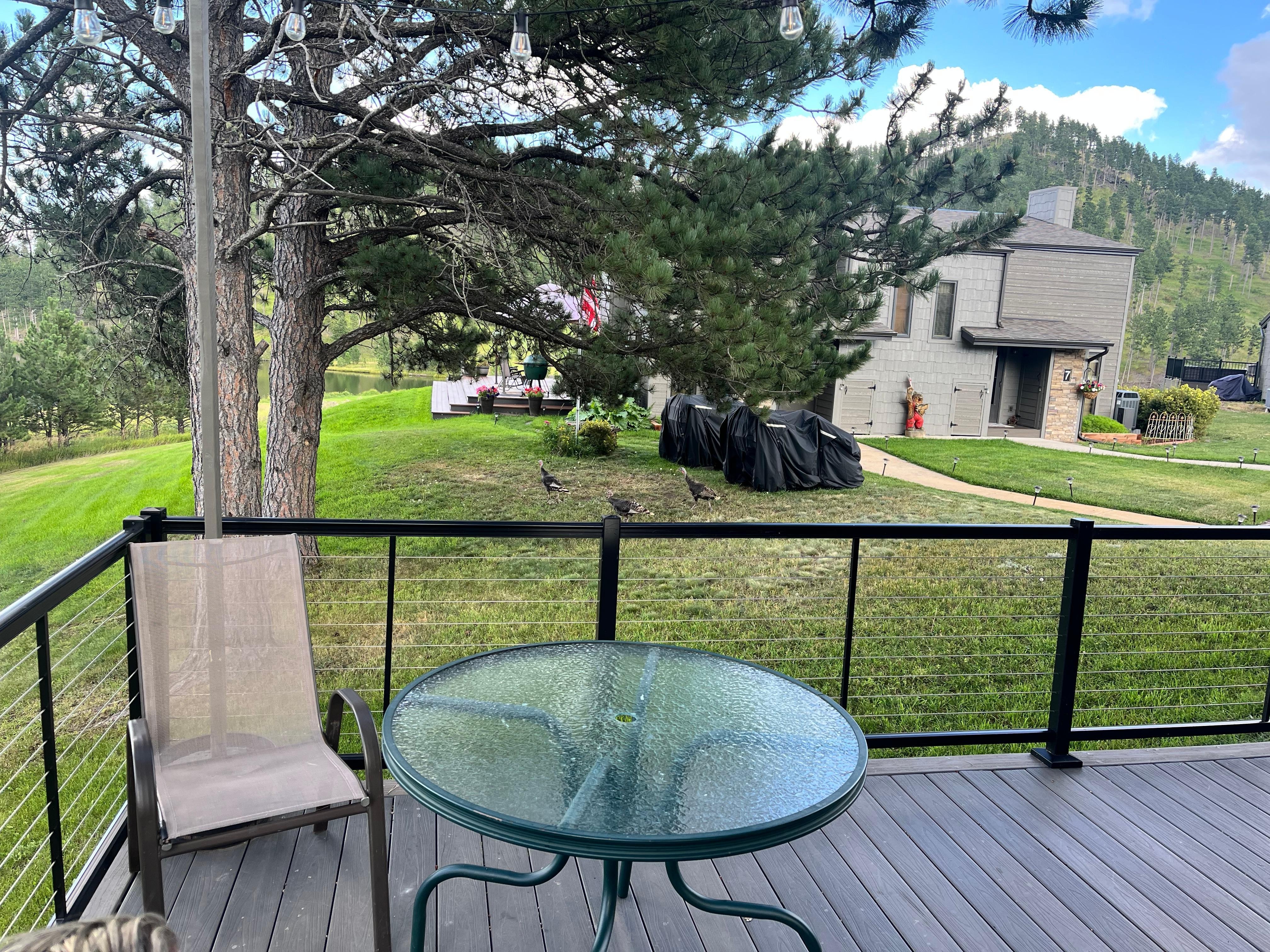 The Condo is located 11 miles west of Hill City appx 1.2 miles is on a gravel road. The seclusion of the Condo is a great place to start your morning with breakfast on the deck while watching for deer; then finish the day allowing the kids to roam while you unwind where you began your morning. Take a walk around the lake, bring your fishing poles and catch some trout. Bring a book and disconnect from the hustle and bustle.