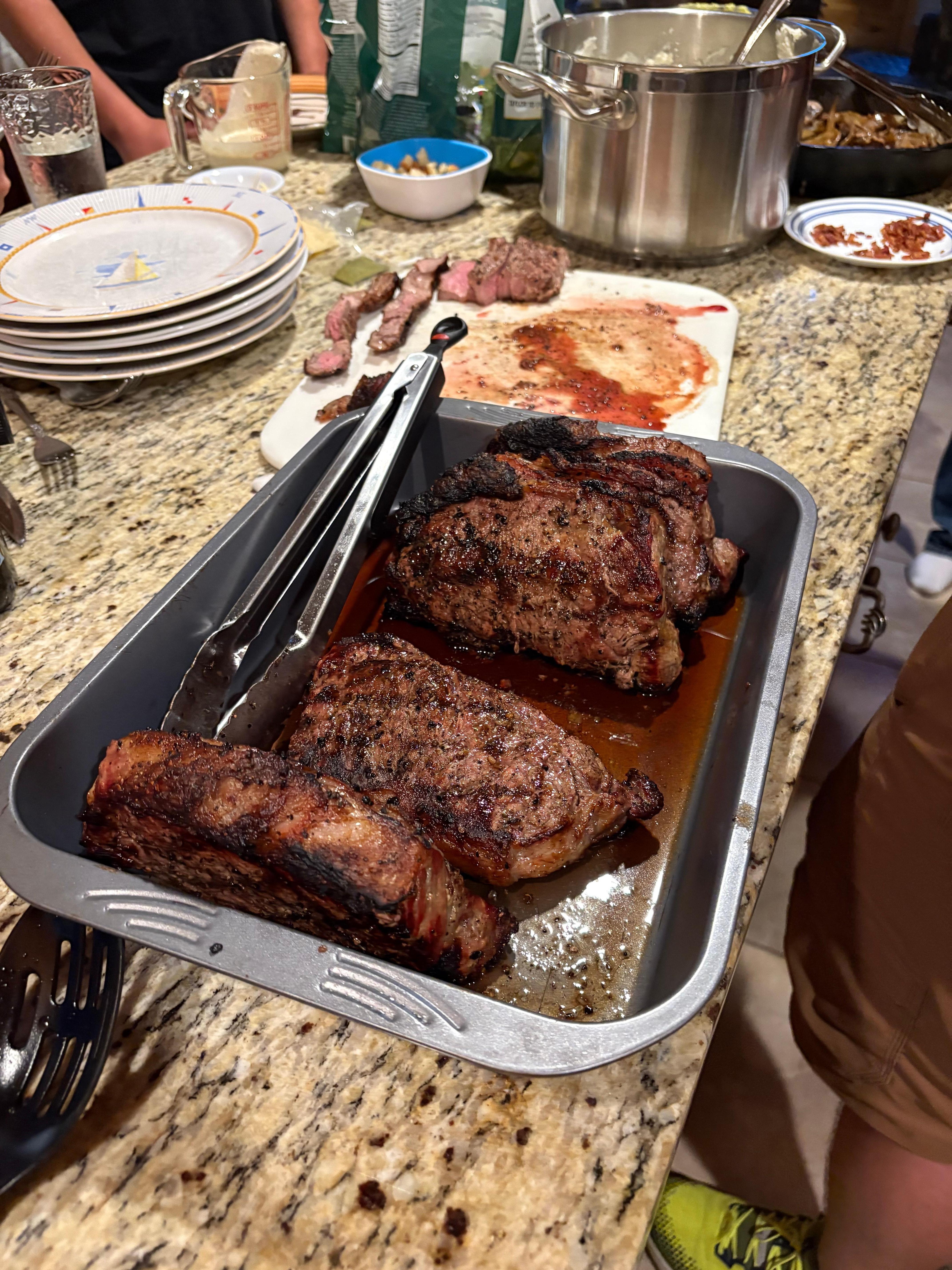 The dining table is large enough to seat eight with ease; you won’t be jostling elbows and knocking knees here. The adjacent breakfast bar can seat four more should you have company—or if the kids want to eat “on their own” while the adults linger over a more leisurely meal at the table. The kitchen is equipped with a full array of appliances, cookware, and tableware, plus a wealth of gleaming counter space. It’s also large enough that several people can help with cooking and cleanup—and the dishwasher will make the latter a cinch. There’s also a charcoal grill outside, should you have a hankering for barbecue.
