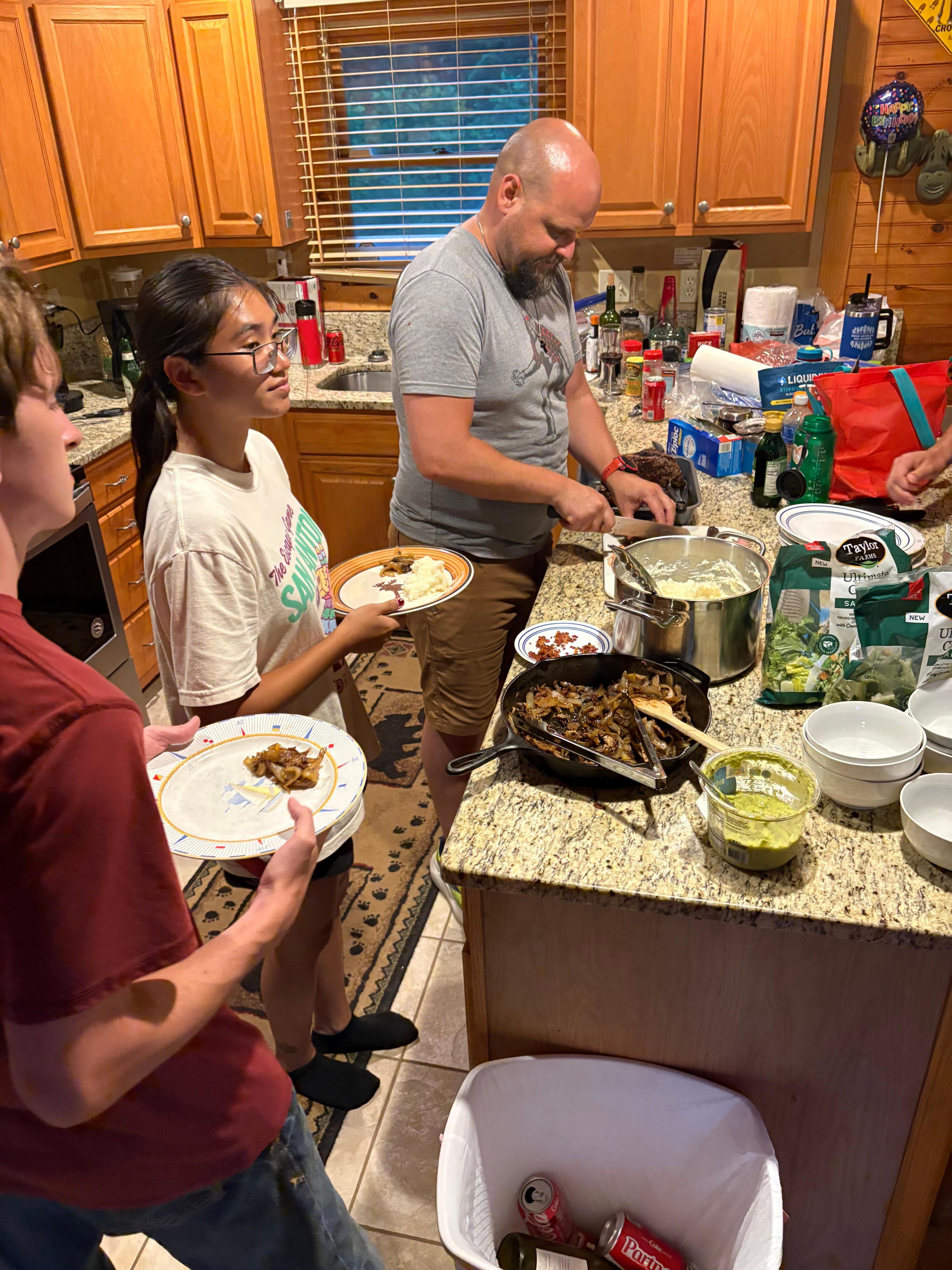 Of the four bedrooms, two are on the main floor and two are upstairs. In addition to a lofty king-size bed and a bathroom, each bedroom has its own TV and plenty of storage. Two of the bathrooms include a luxurious extra: a jetted tub. After a day of hiking, biking, or whitewater rafting, a pampering soak will have your muscles feeling as good as new. And if you have additional guests, one of cabin’s sofas opens into a queen-size bed, enabling The Moose Is Loose to sleep up to ten people in total.