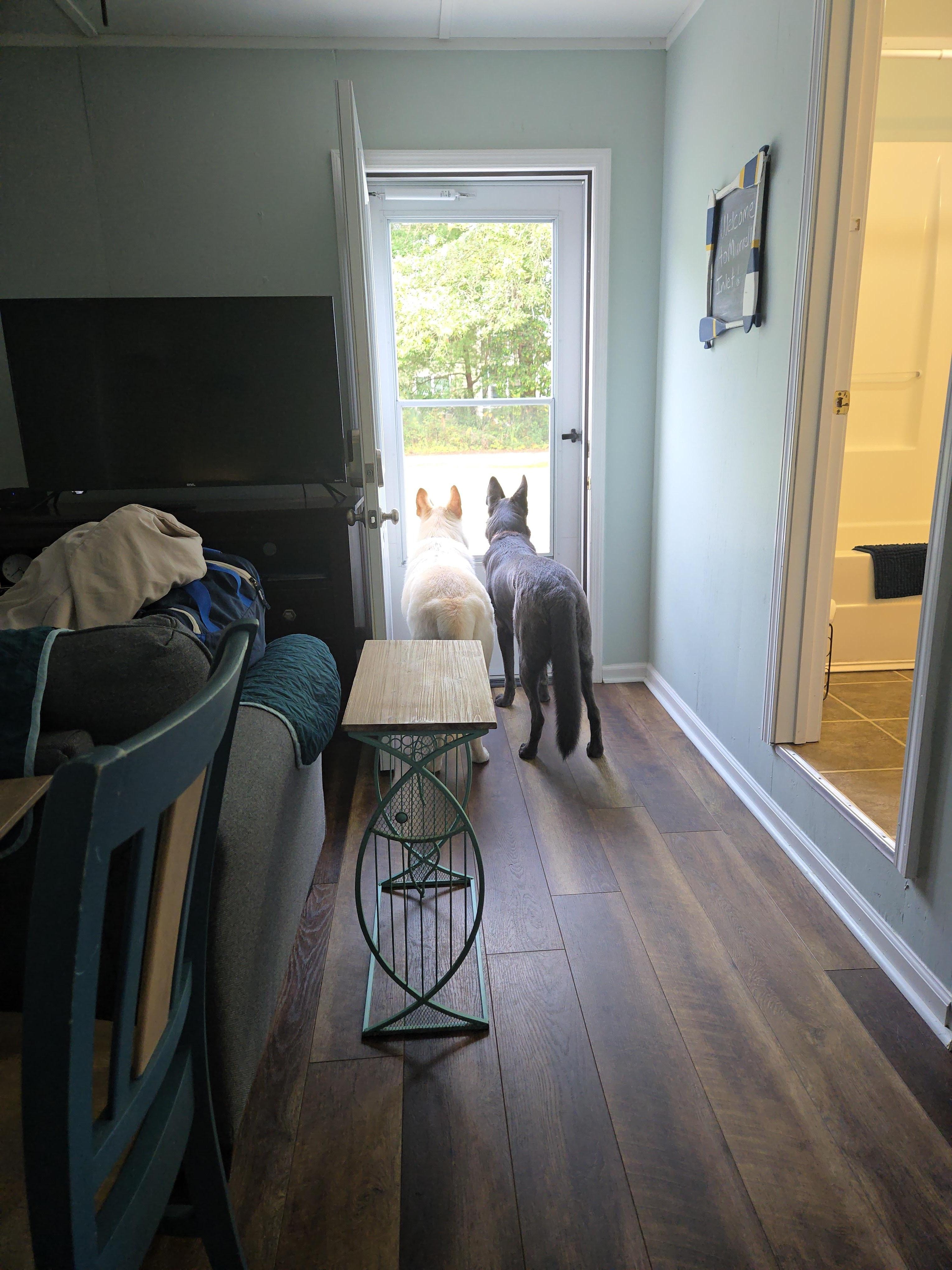 This 300 sq ft cottage has a fully stocked kitchen, 4 burner stovetop/oven, microwave, Keurig with coffee and creamer, and a apartment size refrigerator.