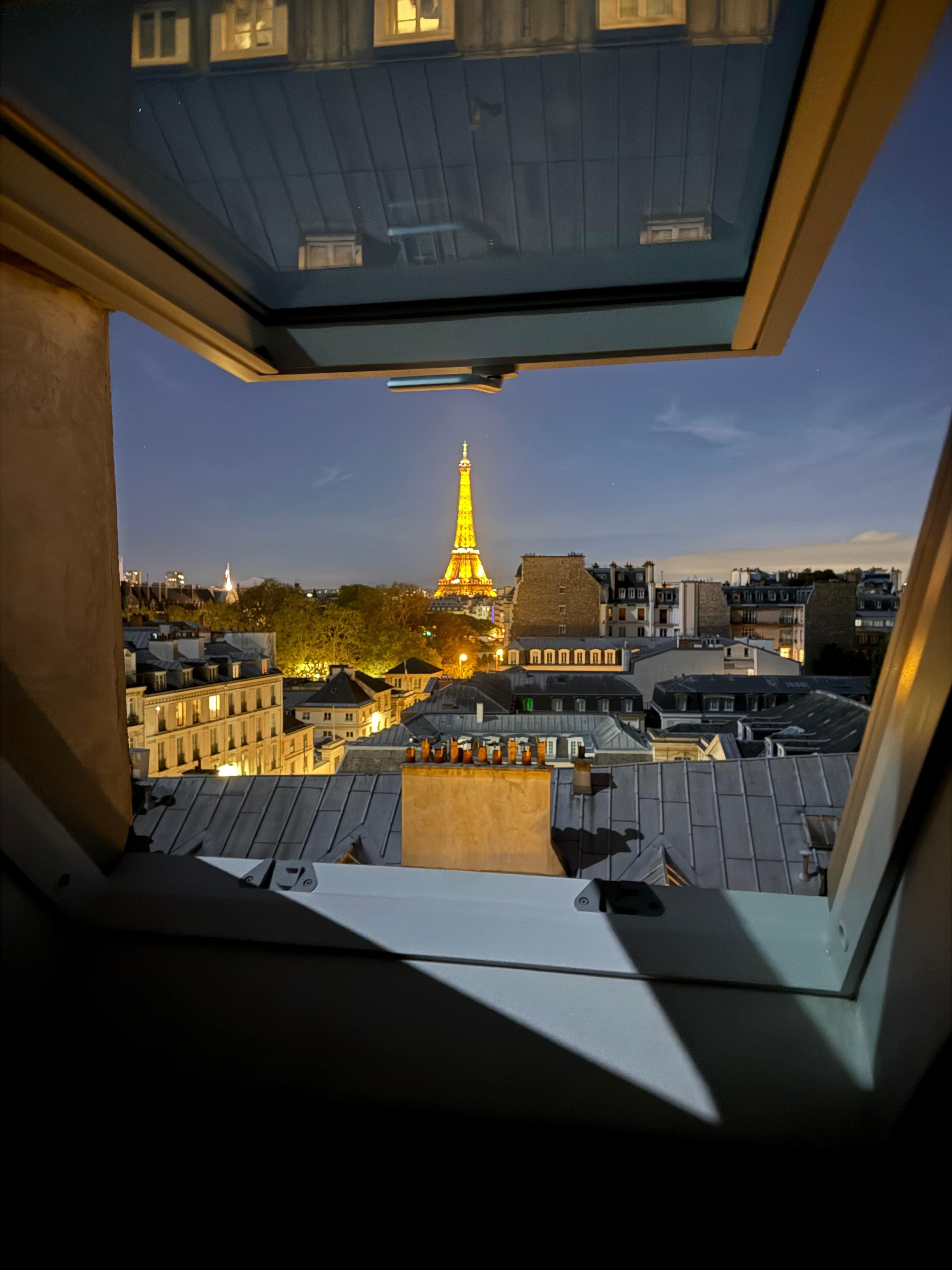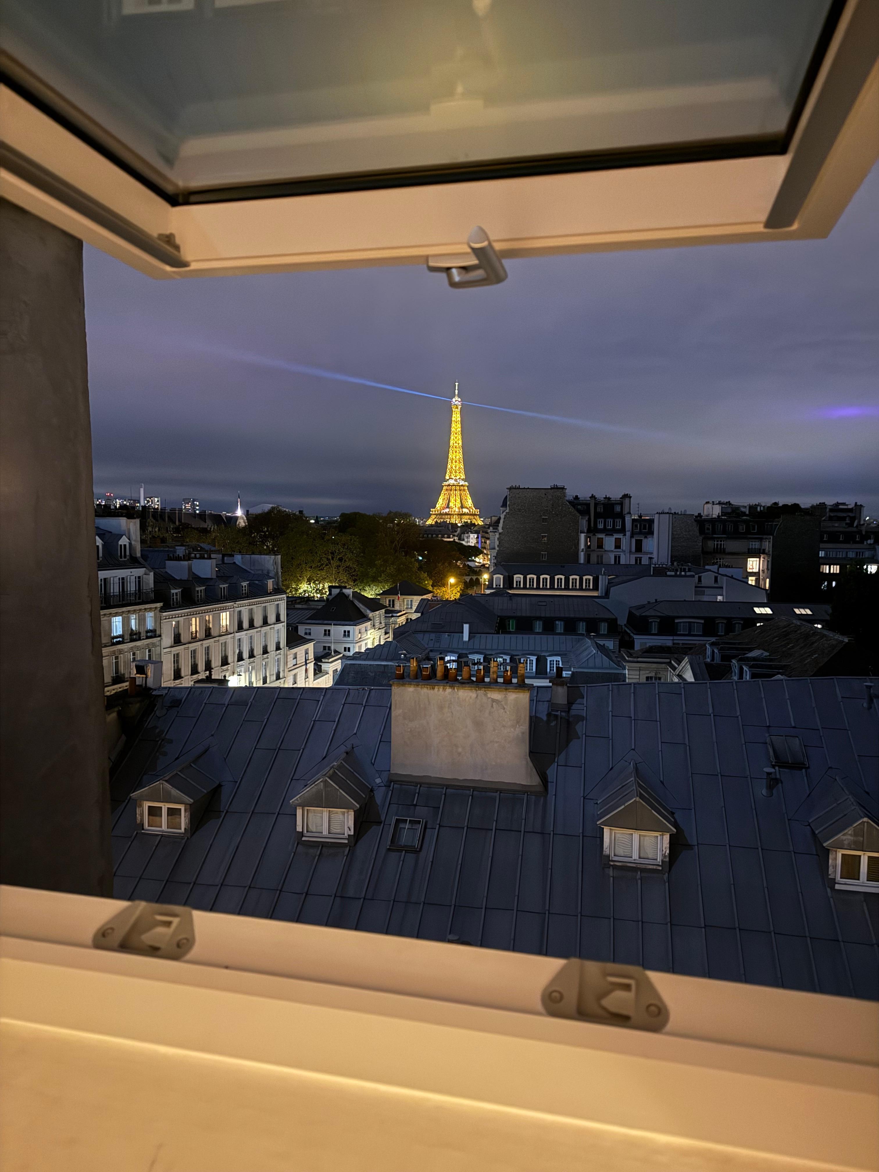 Fully refurbished by architect, this apartment has great view of Paris and Its major monuments and supporters can enjoy beautiful sunsets over the capital. Located on the top floor the space is really quiet (the lift goes all the way up to the sixth floor). The apartment is a duplex with AC in the bedroom. It is the perfect place for a traveler Who want to stay in the best and MOST elegant "arrondissement" of the MOST beautiful city in the world. Walking distance from the Champs Elysees, Saint Germain, Montparnasse, Orsay Museum, Grand Palais and the Eiffel tower.