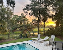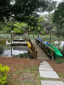 While our children enjoy the beach, they equally enjoy the fishing and kayaking offered from the back yard of the house. When at the house our kids spend most of their time fishing or kayaking from the dock in the backyard. The large pool is ideal for relaxing after a day at the beach or biking through Sea Pines