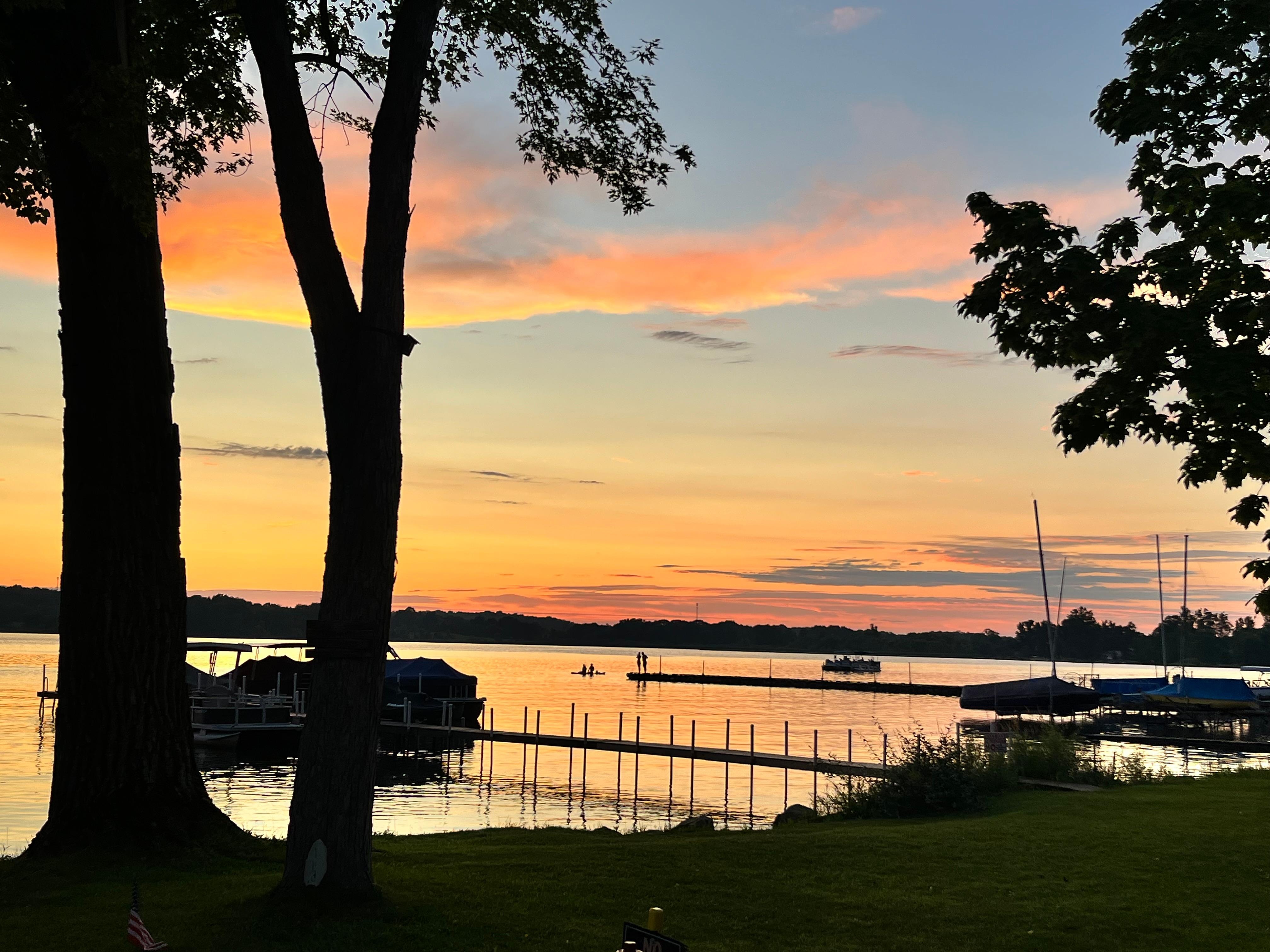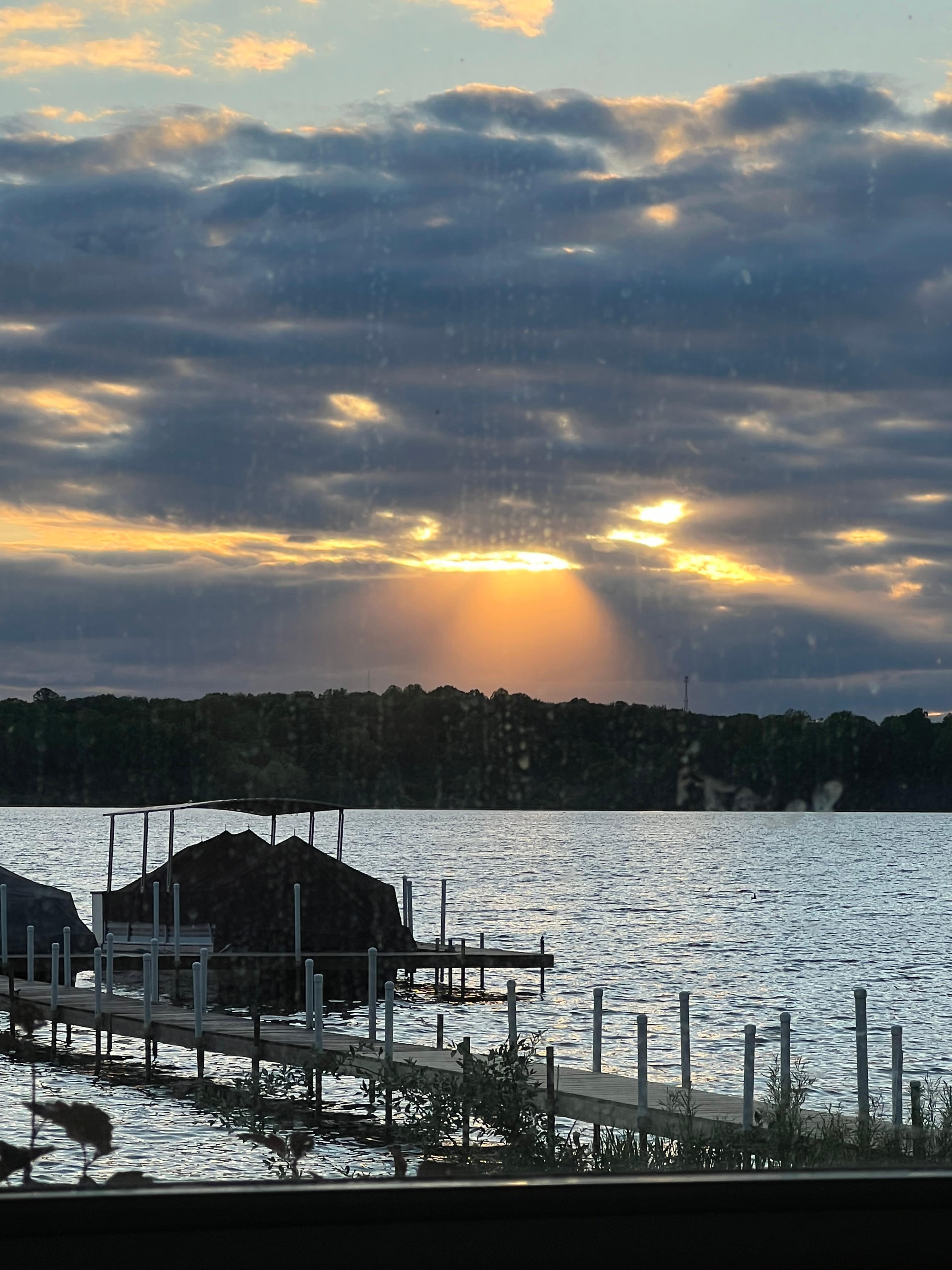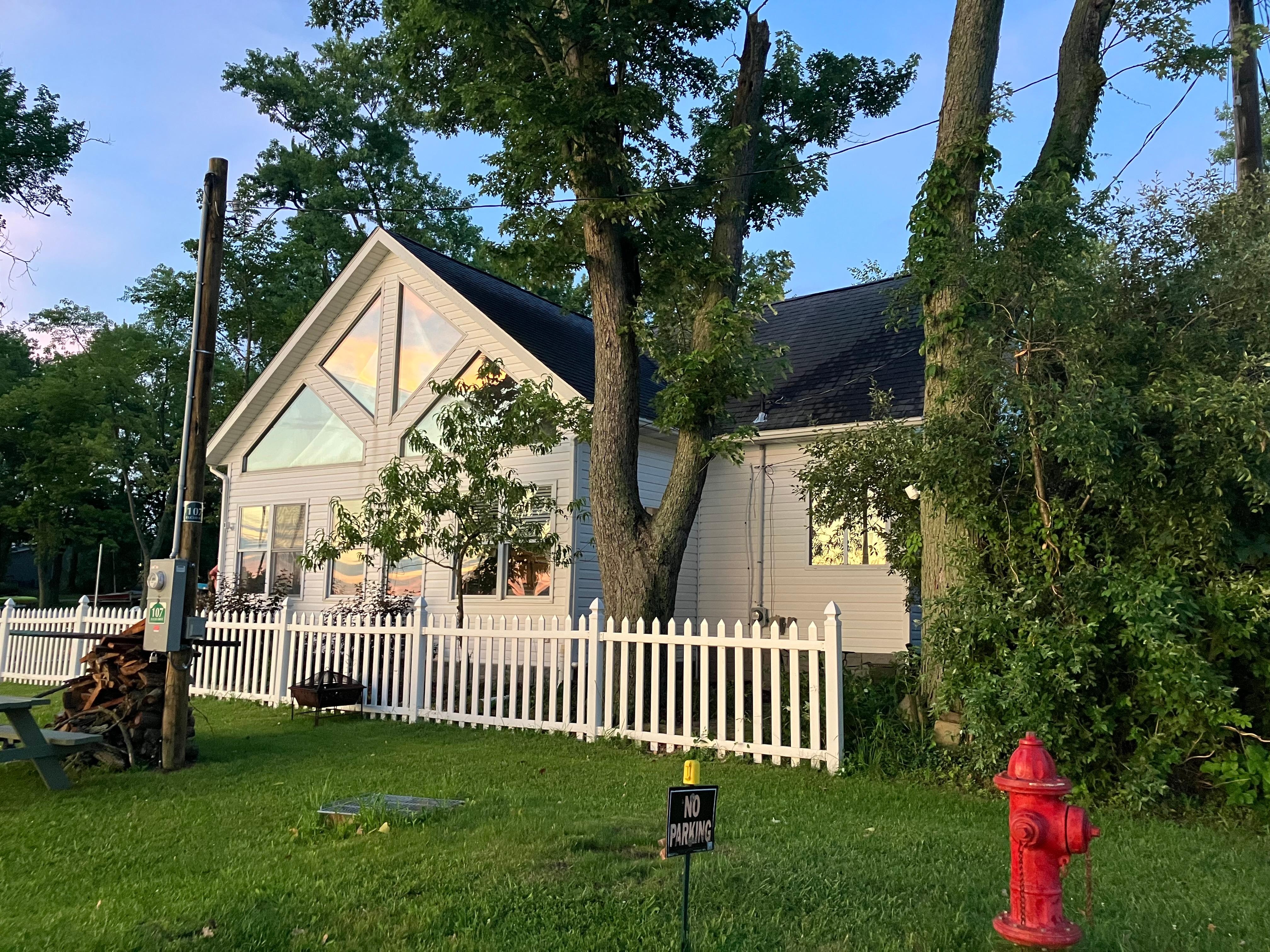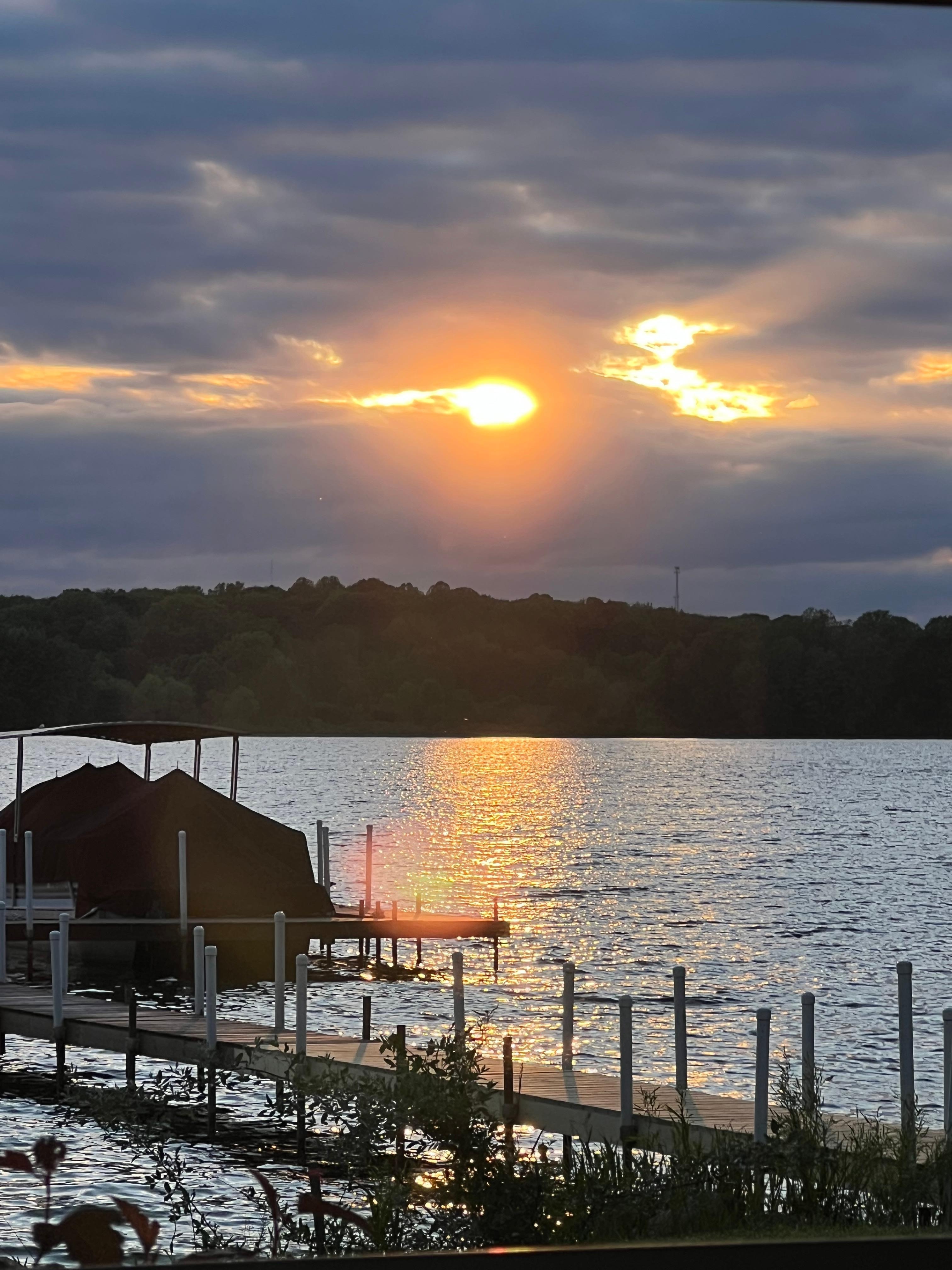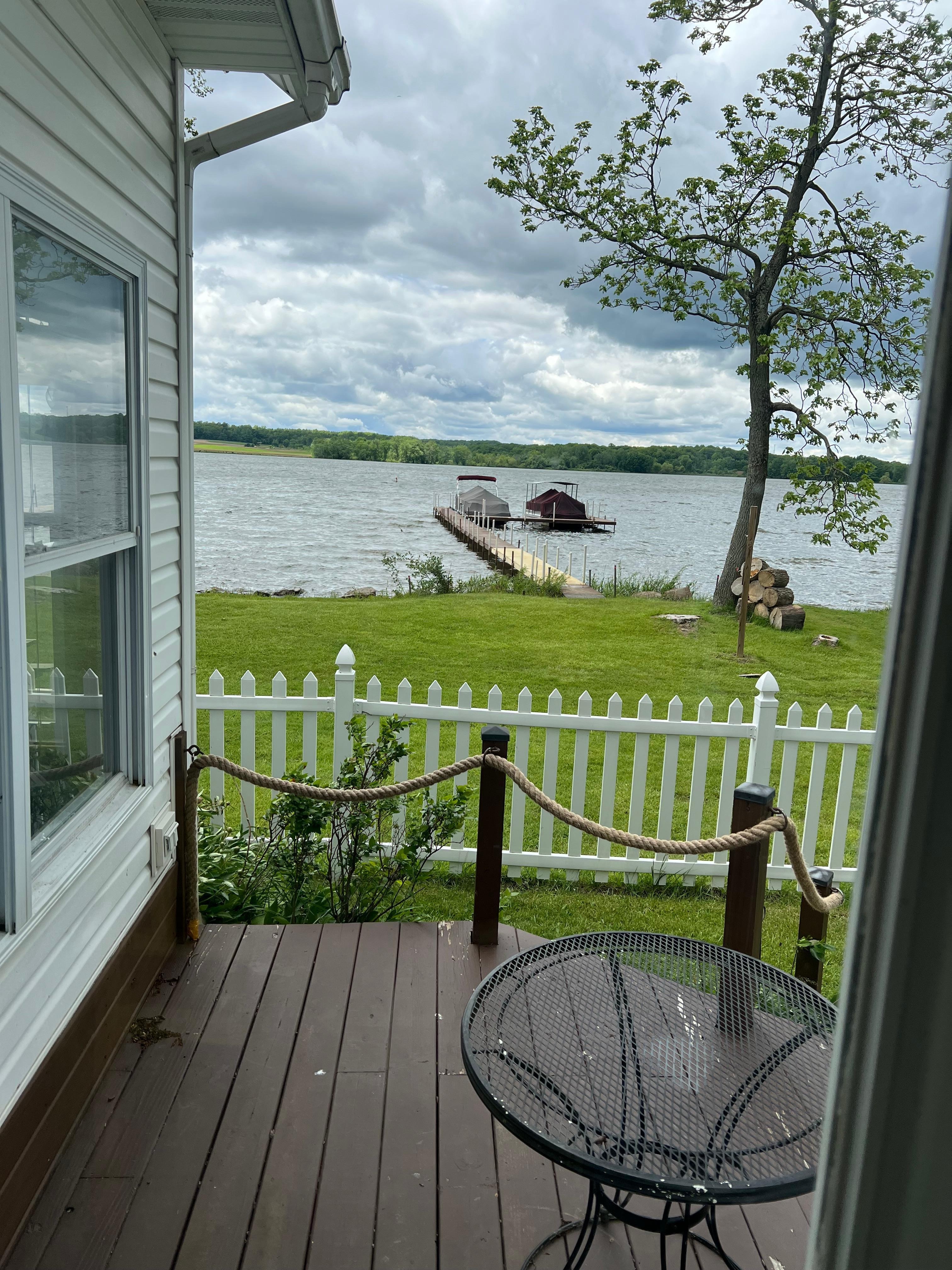 The deck was great to sit out and watch the sunset and the lake, eat, sit and talk. Firepit was nice at night and the picnic table had another seating element to the outside. Many enjoyed the hammock and coffee area between the trees.