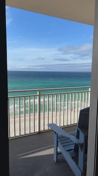 Both the living room and Master Bedroom overlook 400 feet of the awesome sugar white beach and emerald green waters. Our unit sleeps nine comfortably with a new king size master bedroom, king size guest bedroom, bunk beds with a full mattress on the bottom and twin on the top, and a new queen size sleeper sofa with 6' mattress. Also included in our floor plan are two spacious bathrooms, washer and dryer, as well as an open kitchen with gorgeous granite countertops, microwave, coffee pot and everything you need for a fun filled, relaxing and enjoyable vacation. A 58 inch Flat screen TV in living room a 55 inch tv in master bedroom, as well as wireless internet service. The view from our Floor Balcony is ideal for dolphin watching, sunsets like you have never seen before, and simply just relaxing.