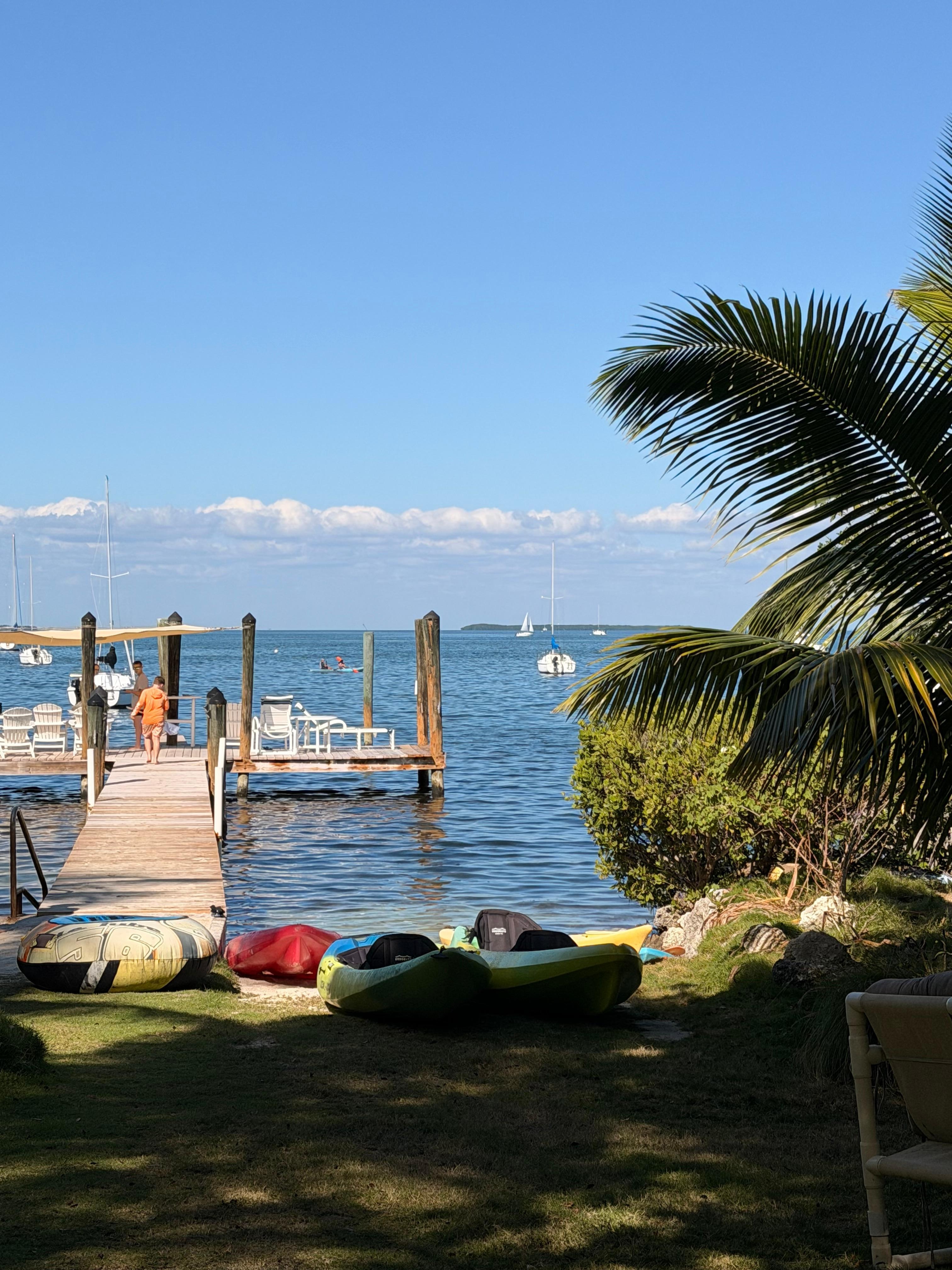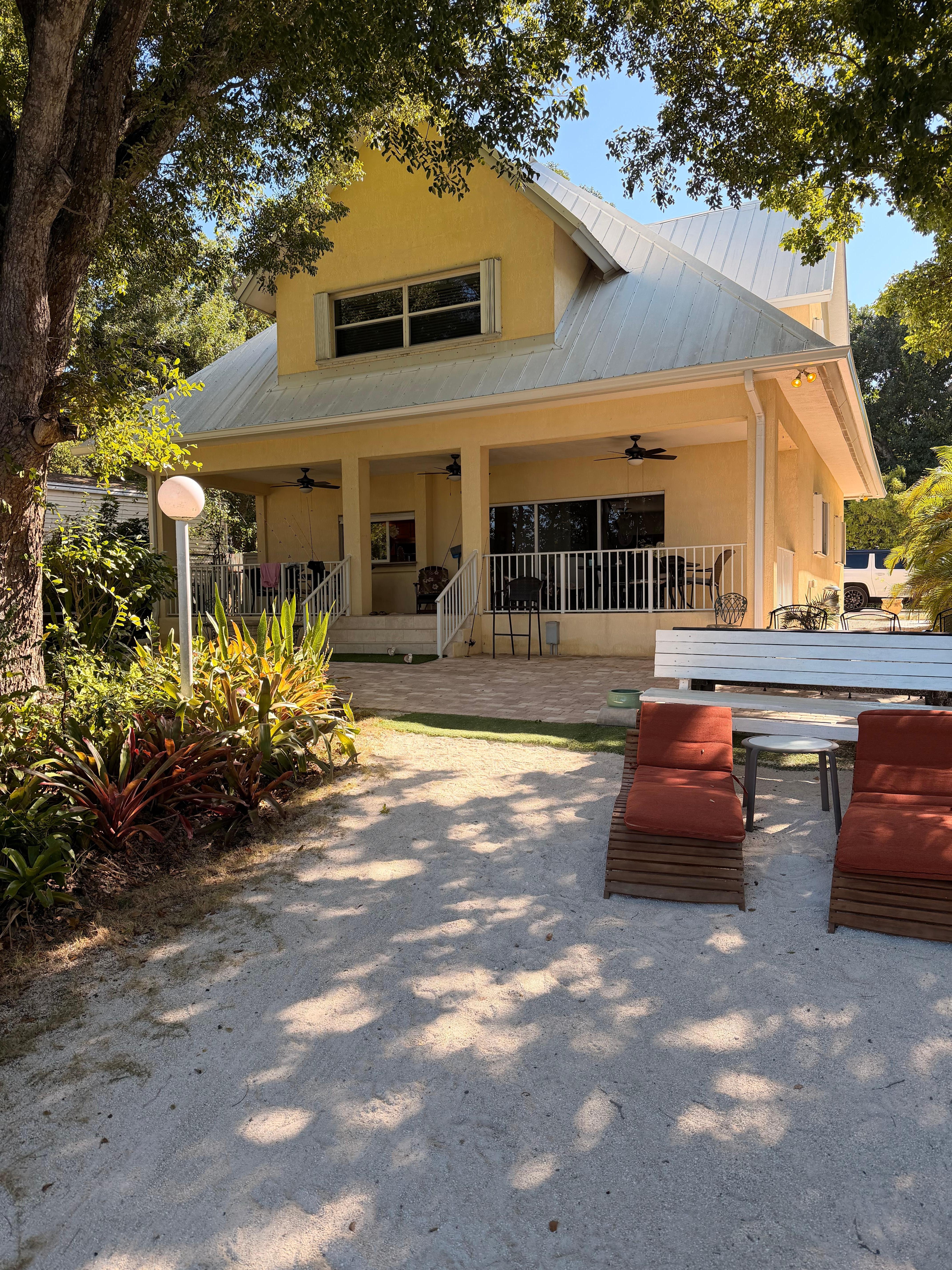 Spacious Key Largo bayfront home with sandy beach in tropical garden on one acre with spectacular bay views and sunsets. Relax on the large porch with ceiling fans and wonderful views. Sunbathe on the beach or enjoy water activities using the kayaks Free. Children will enjoy the sandy beach and toys provided. Lounge in the hammock among exotic trees. The beach house was built for family vacationing. Massive porch overlooking the beautiful waterfront sunsets for evening dining. A full kitchen with granite countertops too. Dining room situated by massive windows to view the clear, blue water. First floor bedroom has king-size bedroom with adjoining full bath. Each level has its own central AC setting for perfect climate control. Second floor features three bedrooms. In the master bedroom is king-size bed with bamboo accessories. Walk-in closets give ample storage. Master bath provides a tub with plenty of towels and granite vanities.