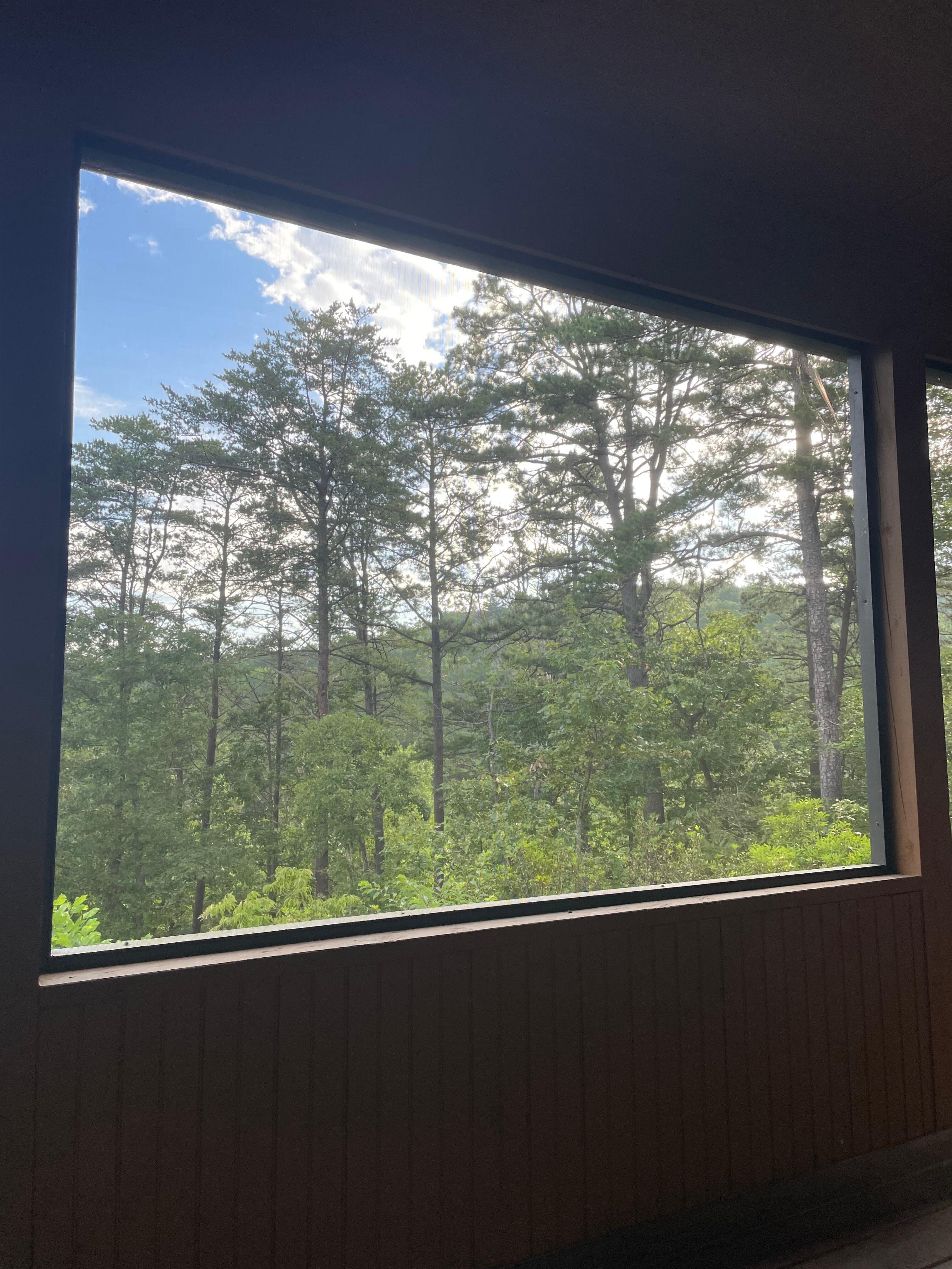 We loved the view and location of this cabin. Even though there were other dwellings around, it was still quiet. Our only negative comment would be about the cleanliness of the floors. As we cleaned up a spill in a bathroom, we found that the floor had really not been mopped lately. Also, there was a spill in front of the brown chair in the living area that had not been cleaned up indicating that that area of the floor had not been cleaned. We did have a lovely time here. We heard and saw many animals off the deck. Overall a nice place.