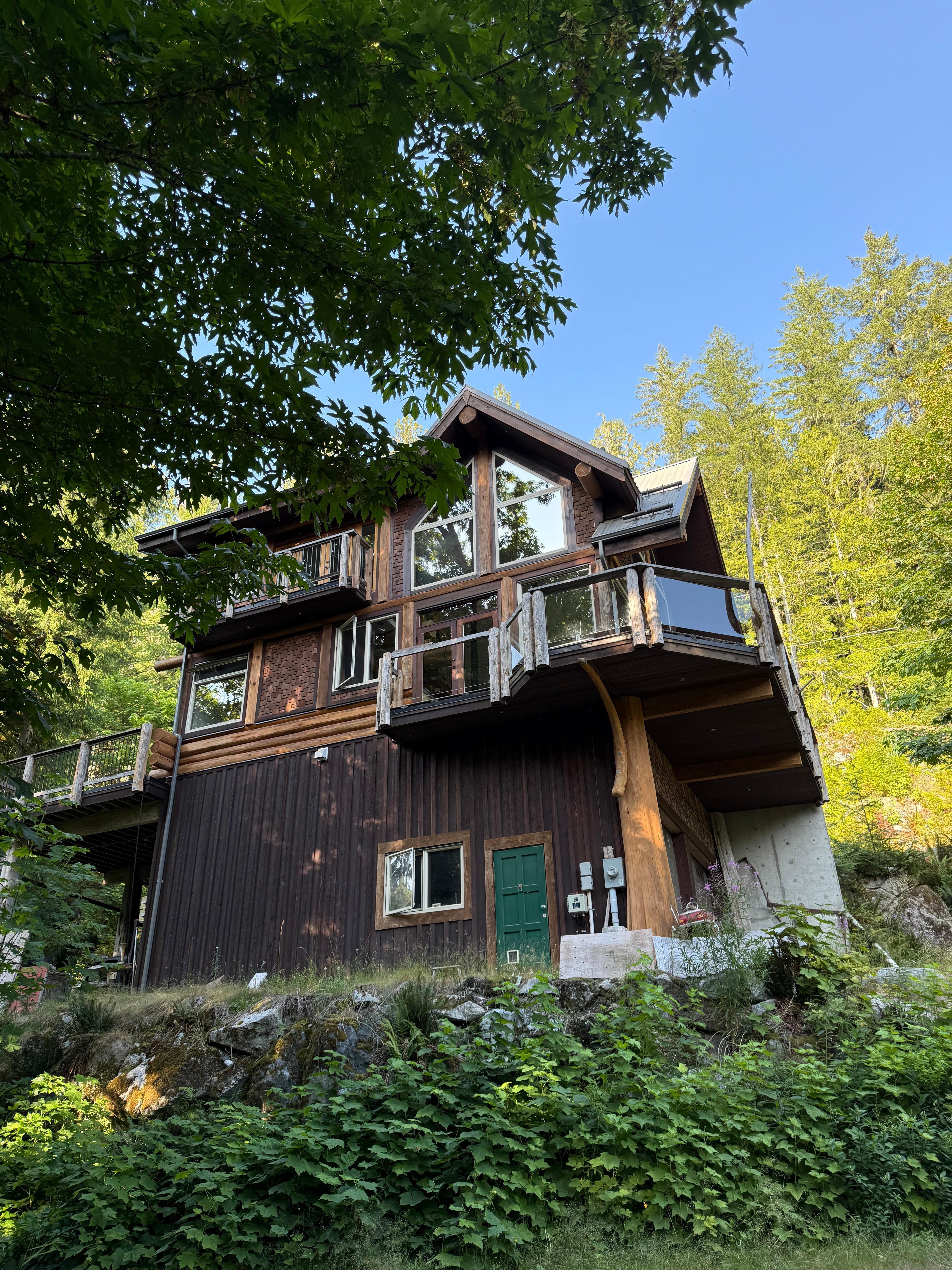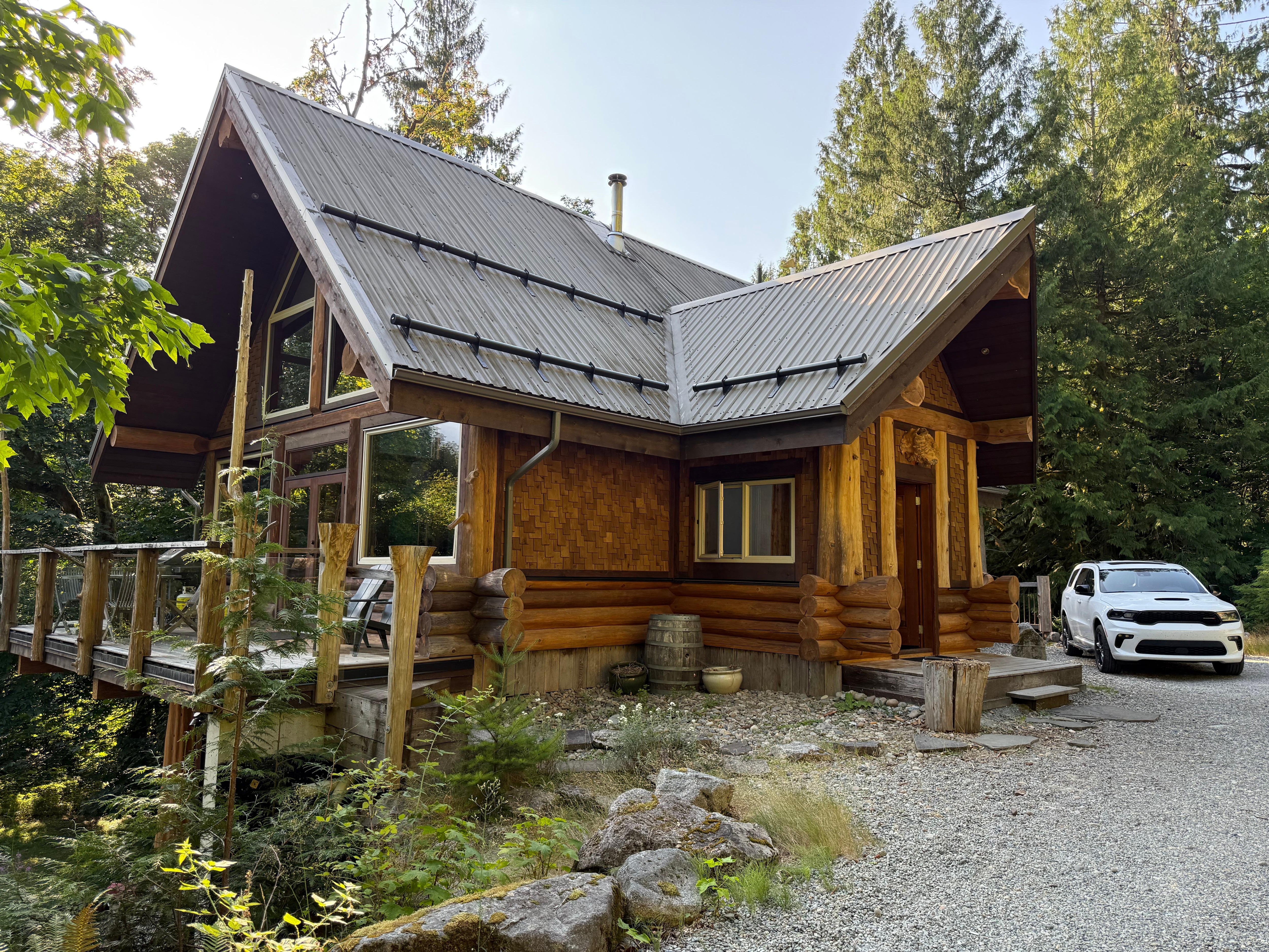 Brand new Rustic log house nestled in the Squamish Valley. 2 bedroom one king and a queen + couch (comfortable to sleep 1 person), 1 bath also a shower , 5 acre property surrounded by nature and a creek with amazing glacier view. Eagles viewing on site. Private gate, wifi and cell phone booster for cell reception. Beautiful private lake 1 hour hike behind the house. Surrounded by hikes to beautiful waterfalls, easy walks by the Squamish river.