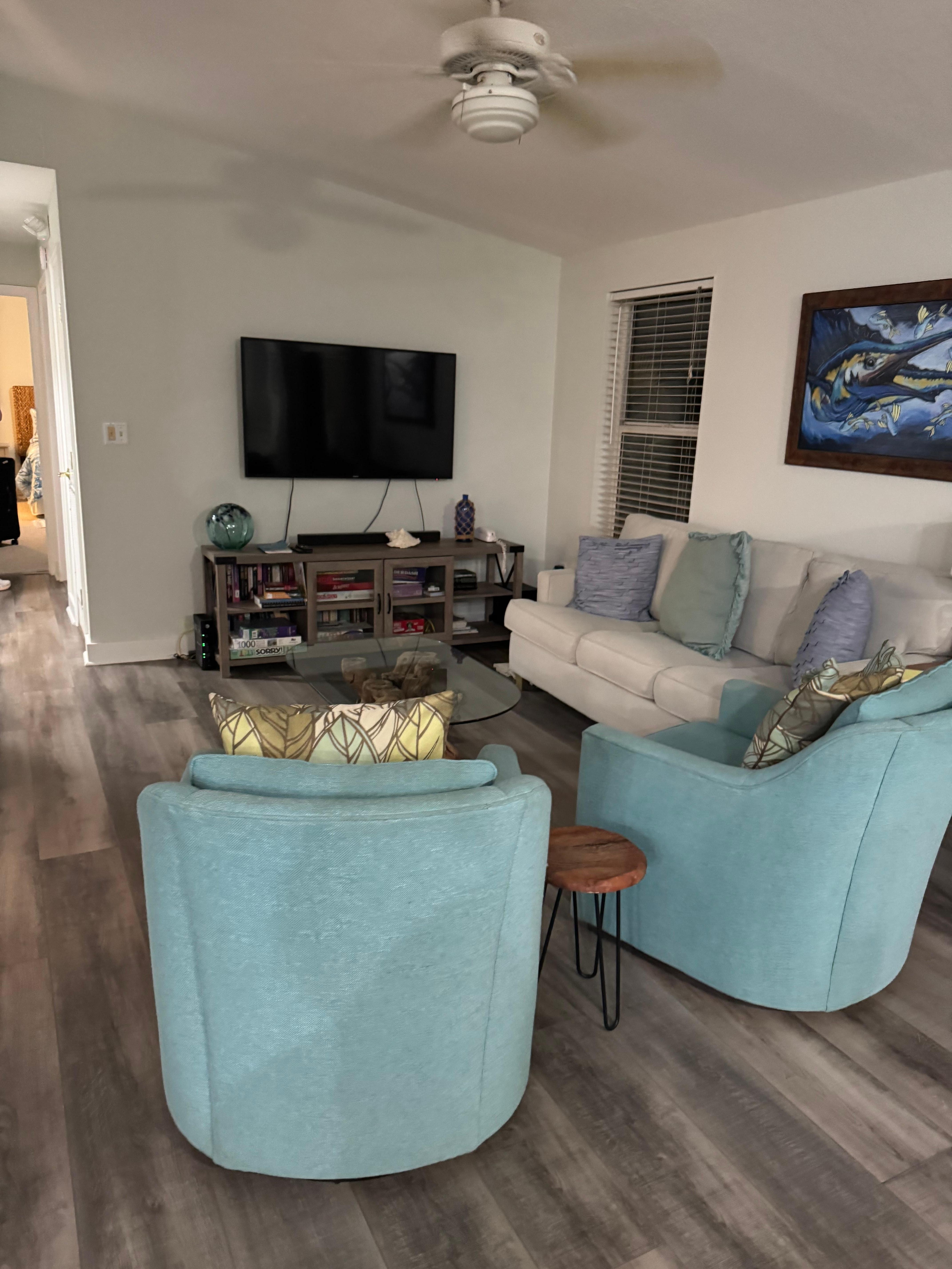 •Living Room: Queen sleeper sofa, Flat screen Smart TV