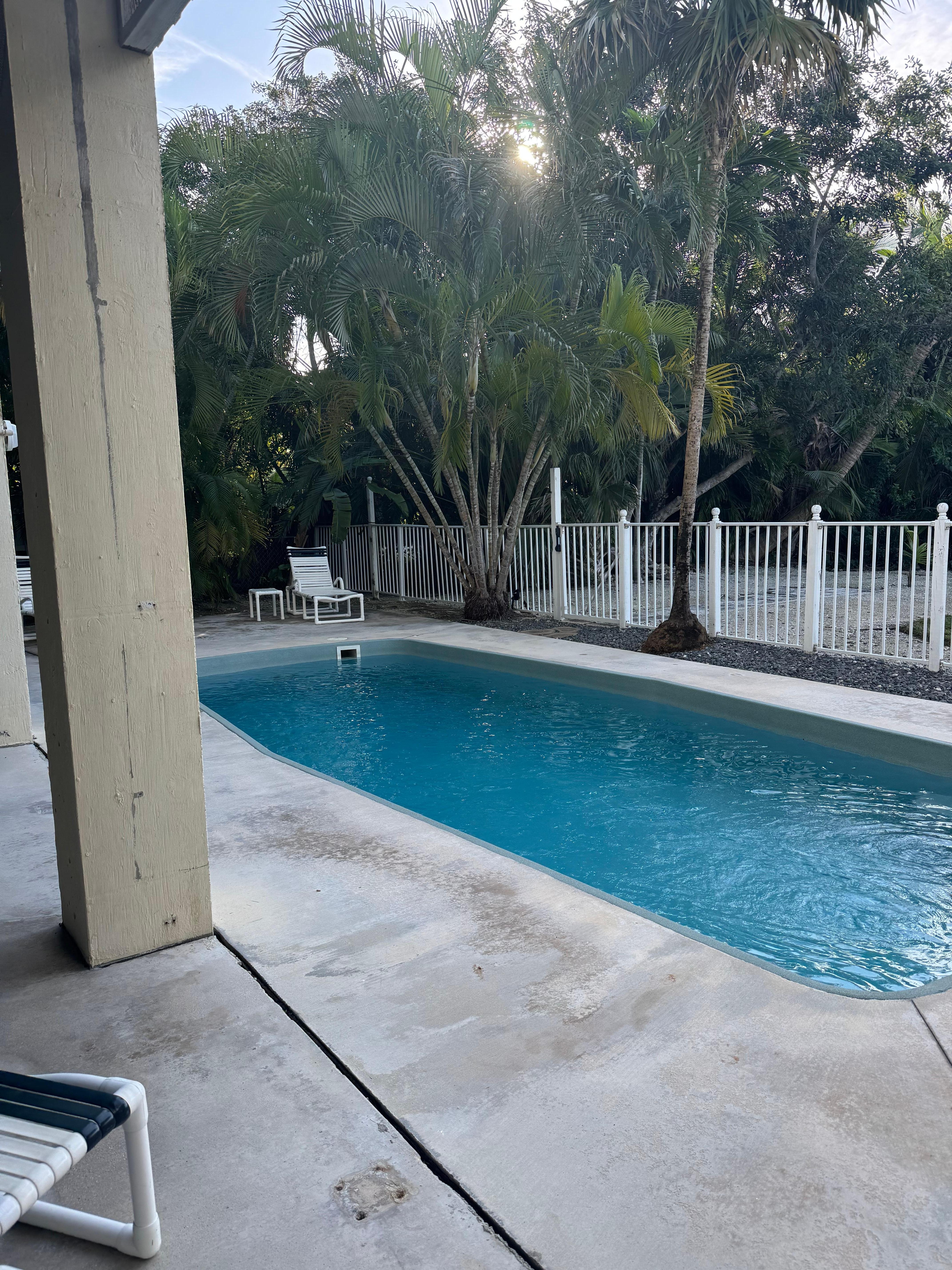 This 3 bedroom/2 bath oceanfront home with amazing views on Cudjoe Key private heated salt water swimming pool, shaded hang out area, ping pong table, corn hole game. The pier, gazebo, kayaks and kayak launch area is shared with one other home, Latitudes. You can dock your 24' boat at the pier. The water is shallow getting out to the channel with about a 2' draft.