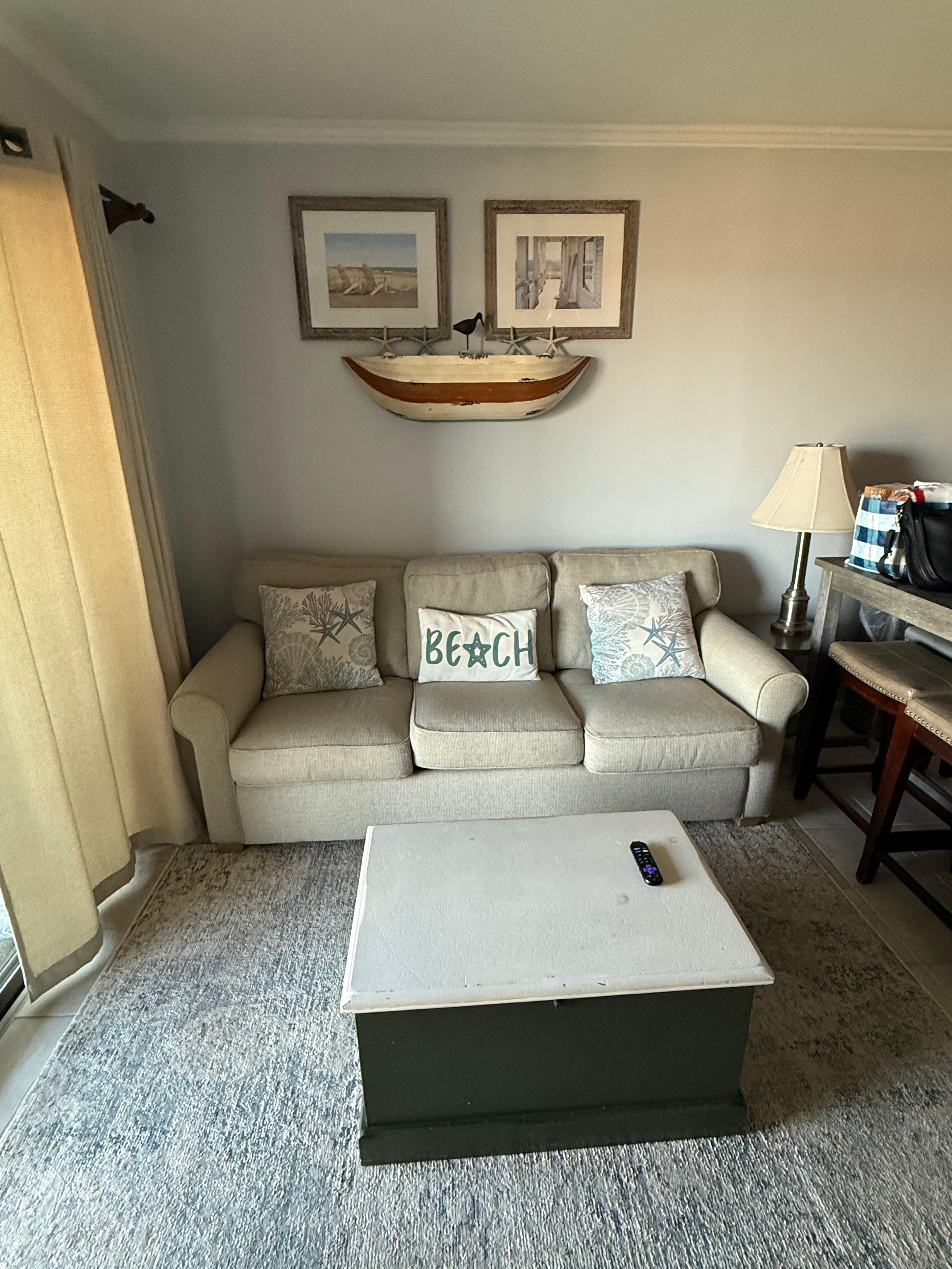 COMFY SOFA AND CHAIR AWAITS YOU TO LOUNGE IN THE LIVING AREA OVERLOOKING THE OCEAN! HURRY IT’S TIME TO BOOK YOUR SPRING OR SUMMER GET-AWAY! ENJOY THE BEAUTIFUL SUNRISE EVERY MORNING WHILE SITTING ON THE BALCONY OR WHILE LOUNGING ON THE COUCH! WIDE BEACH FOR YOUR FAMILY TO RIDE BIKES, PLAY GAMES, BUILD SAND CASTLES OR BASK IN THE SUN!