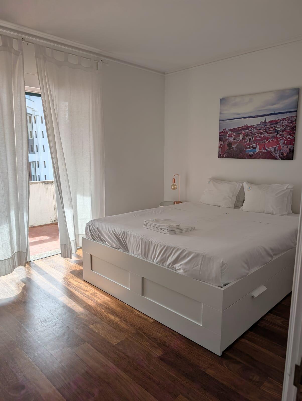 Upon entering the apartment, you will find a living room decorated in a modern style, with a dining room with a glass table for 6 six people and a relaxing living room with sofa bed that accommodates two more guests. The living room has access to a balcony overlooking cascais bay, with table and chairs and two puffs where you can enjoy the magnificent sunset.