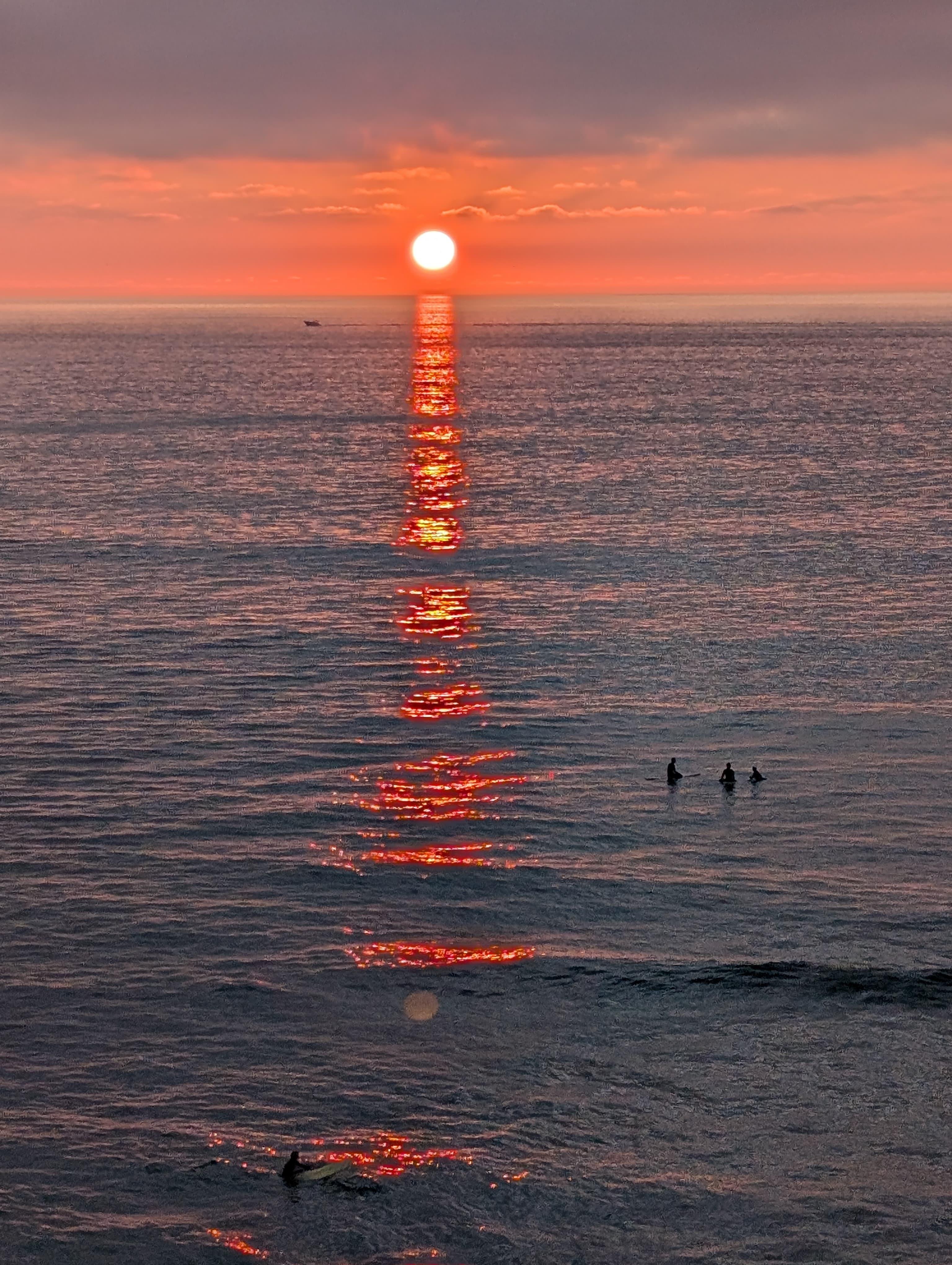 This is a 750 sq. ft. above garage apartment. It's modern, clean and open. Great views of the sunsets over the ocean and beaches. Safe, quiet neighborhood on a cul-de-sac. It is a 5-minute walk to the State Park Beach and surfing spots. We are conveniently located within 5-minute walk of restaurants, shopping, and grocery stores.