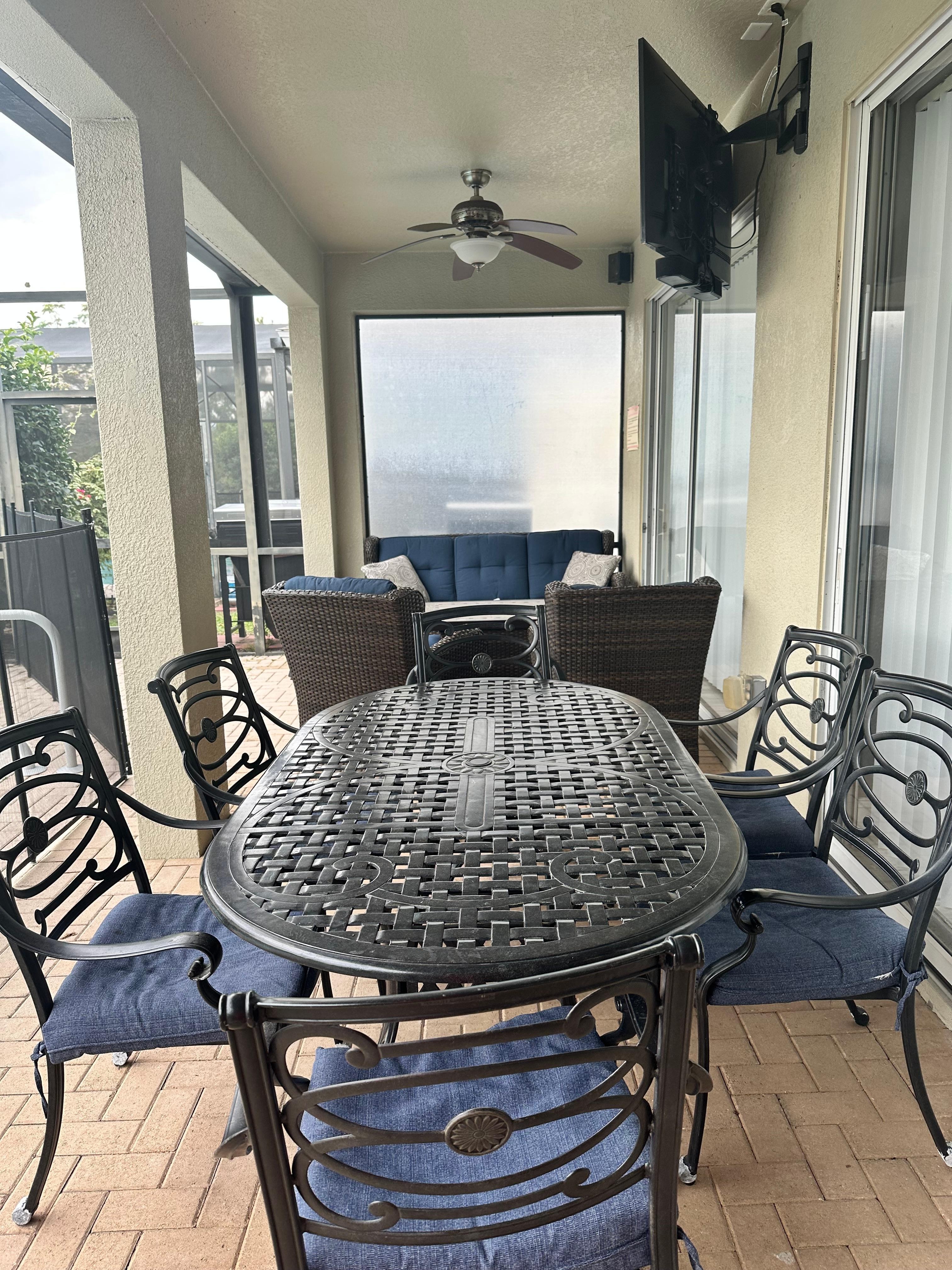 • Pool lanai with TV and soundbar for outdoor movies or game nights