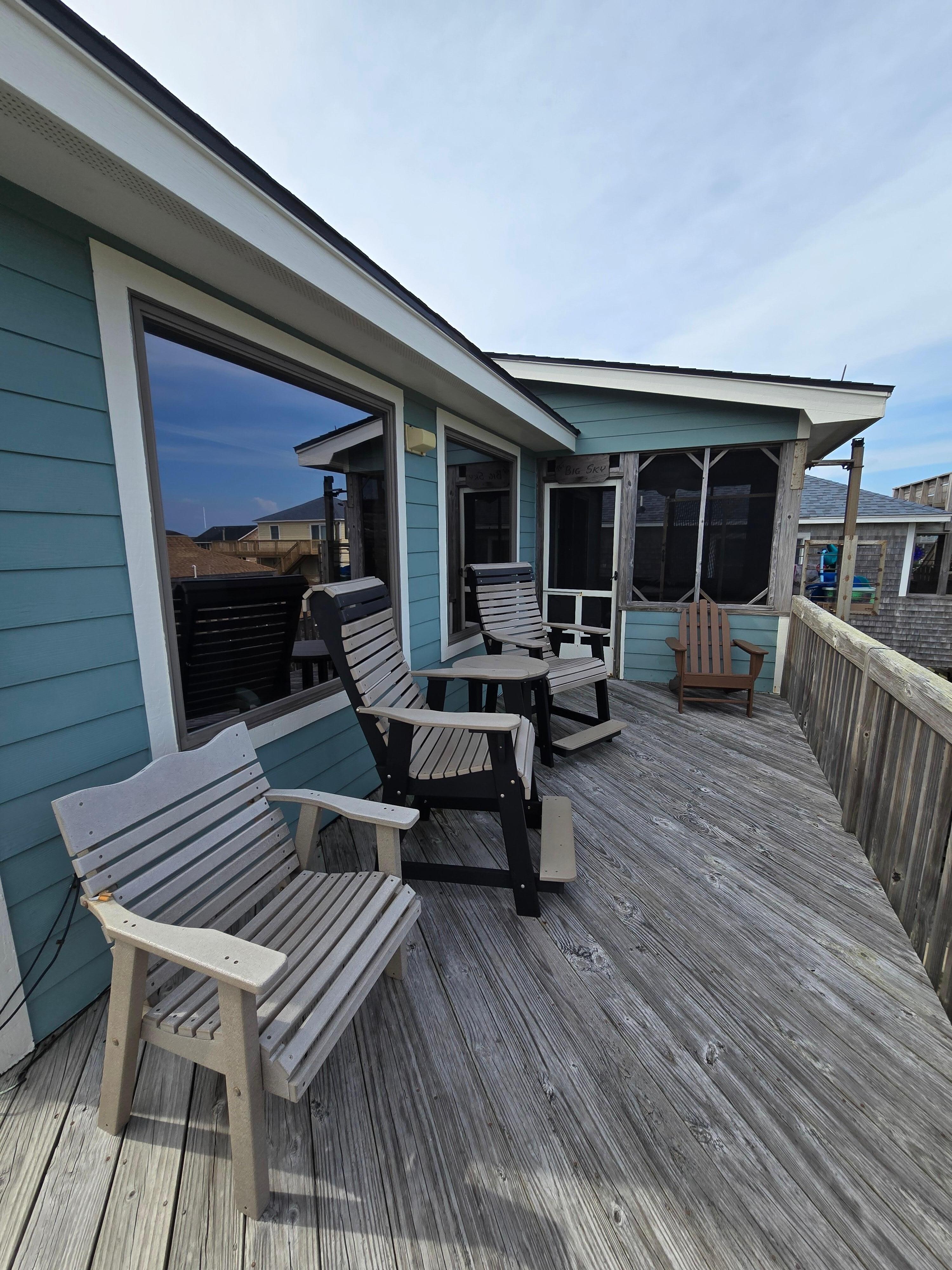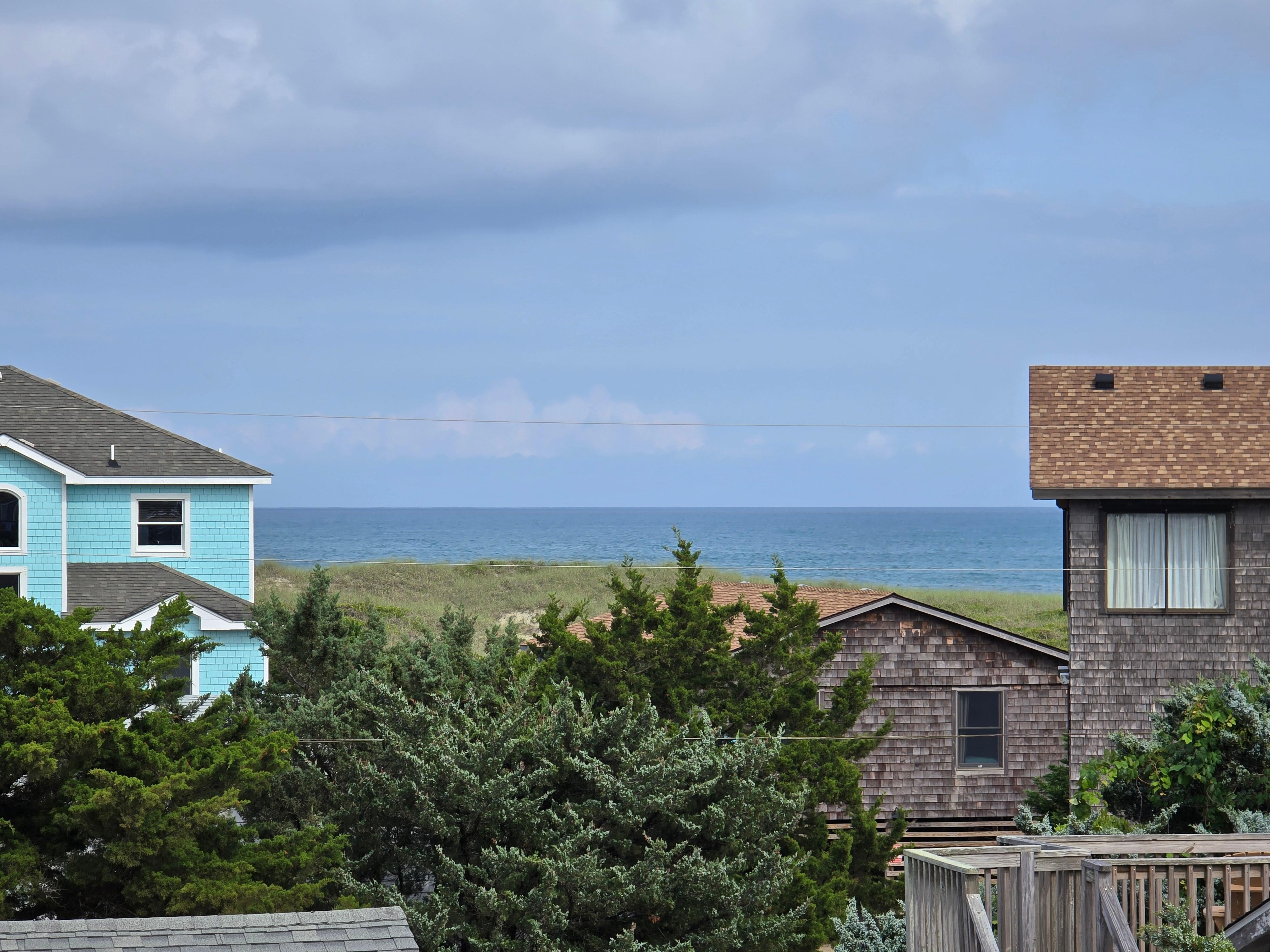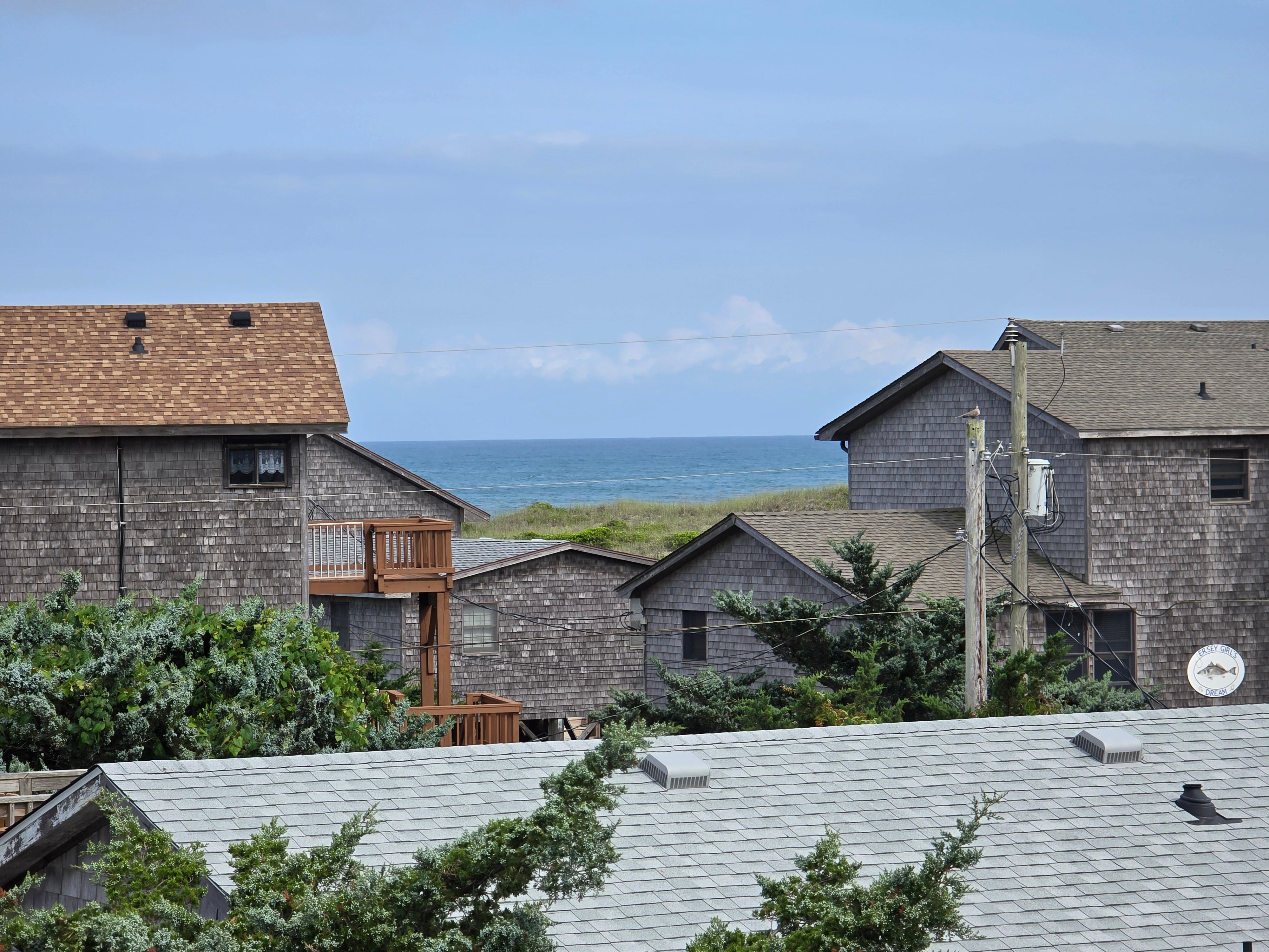 OCEANVIEW Avon - Marlin Drive - Don't tell Montana that BIG SKY country is really in North Carolina. Big is the main ingredient for the ocean views and fun in this light and airy home, just 3 lots from the ocean with easy beach access. Choose from three bedrooms, one with two single beds, and one with a queen bed that share a hall bath, and one queen master with private bath and door to the covered deck with built-in seat. The top-level great room has cedar wood walls, bamboo floors and plenty of windows to catch the sun's rays. There is a nook with game table, kitchen with all the conveniences of home, and dining table next to the slider to the screened porch with picnic table for dining al fresco. Gather around the large flat screen HDTV with DVD player after dinner for a star-studded movie then step out onto the deck to do some BIG SKY stargazing.