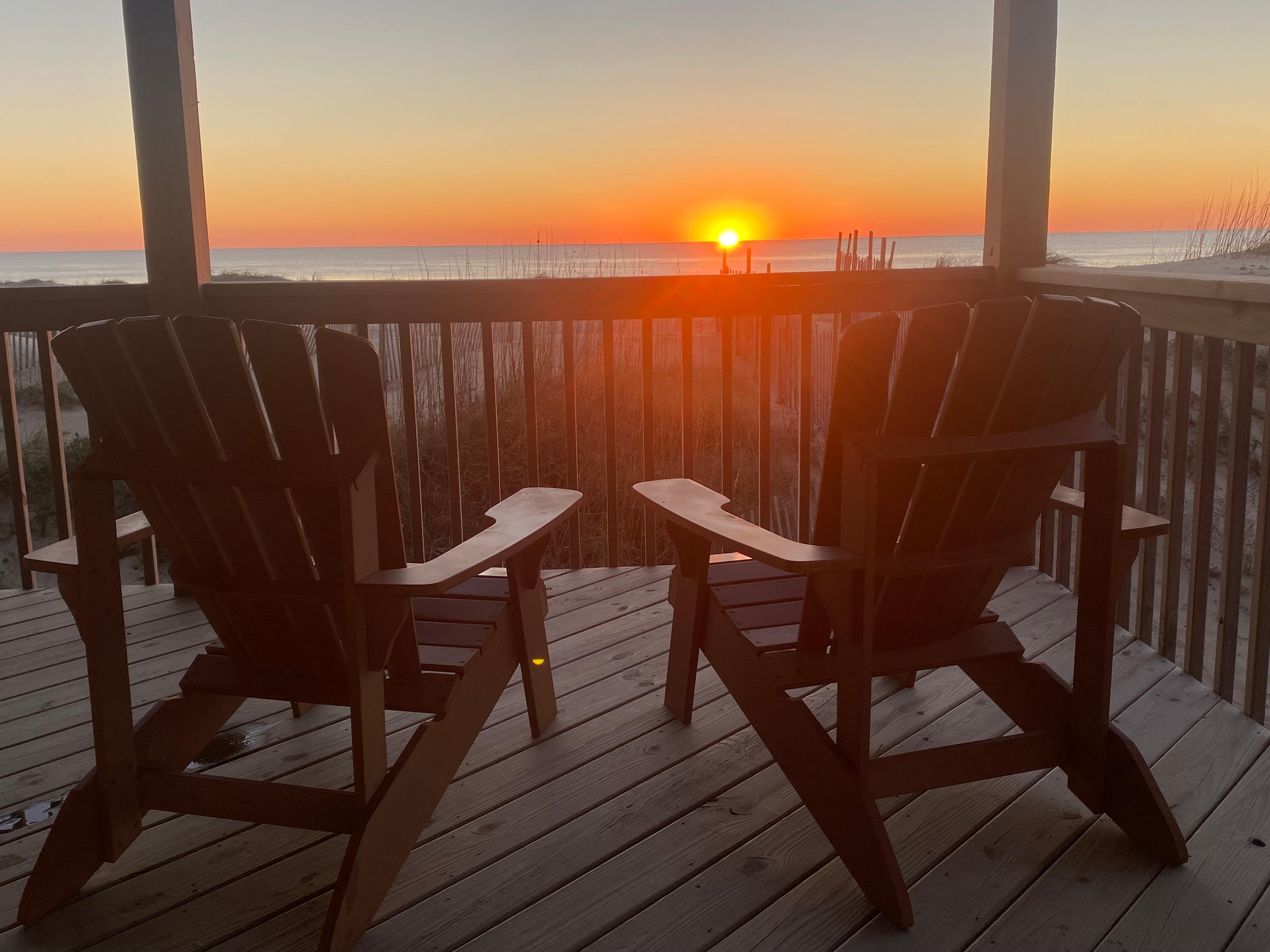 OCEANFRONT Avon- Kinnakeet Shores VISTA lives up to its name with amazing ocean views from its two levels of wraparound decks and multiple bedroom decks with ample Adirondack furniture for relaxing and gathering with friends and family. The first level of this spacious oceanfront home has four bedrooms and two full baths. the second level offers a spacious open great room with vaulted ceilings and floor to ceiling windows. Your group will enjoy the home theater system with 46” TV, surround sound. The large kitchen is equipped for your needs with center island, breakfast bar seating and two refrigerators. Sit down for meals at the dining table seating 10 with spectacular views. The third level master bedroom suite offers a panoramic oceanview and a cozy sitting area for relaxing. The fourth level bonus loft room has a double futon and an ocean view that you can see for miles. VISTA is tastefully decorated with your comfort and needs in mind. Make your dreams turn into treasured memories.