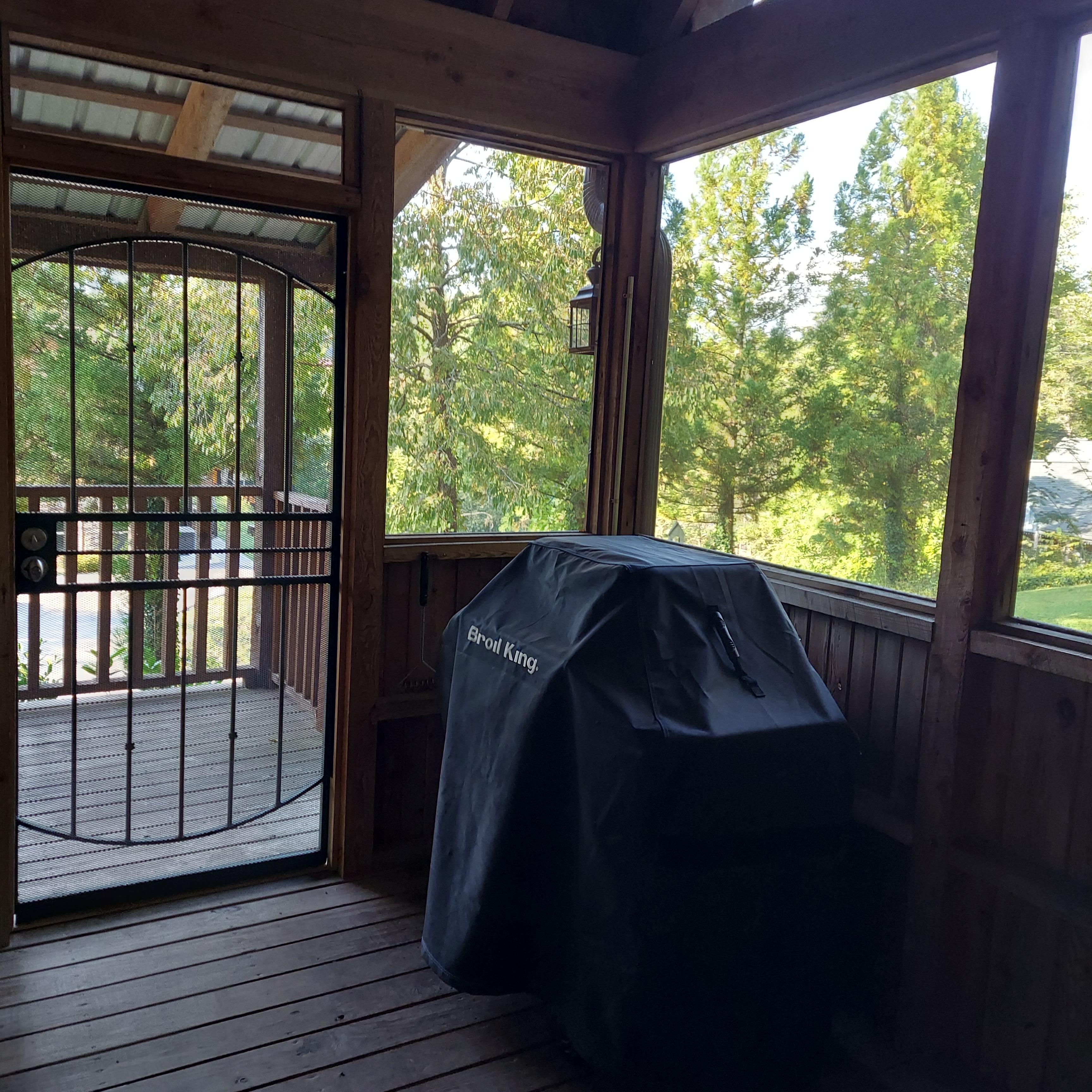 There is a covered front porch with a swing and two rocking chairs for enjoying the views and sipping on your morning coffee!There is also a covered screened enclosed side porch that offers a hottub with a new light weight cover for easy removal and a gas grill for your cook outs!