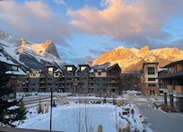 Enjoy panorama mountain views as breathtaking from balconies, kitchen, living room, and bedrooms. You will feast your eyes on endless mountain peaks like the Iconic Ha Ling Peaks, Mt Rundle, Mt Lawrence Grassi, and Mt Three Sisters.