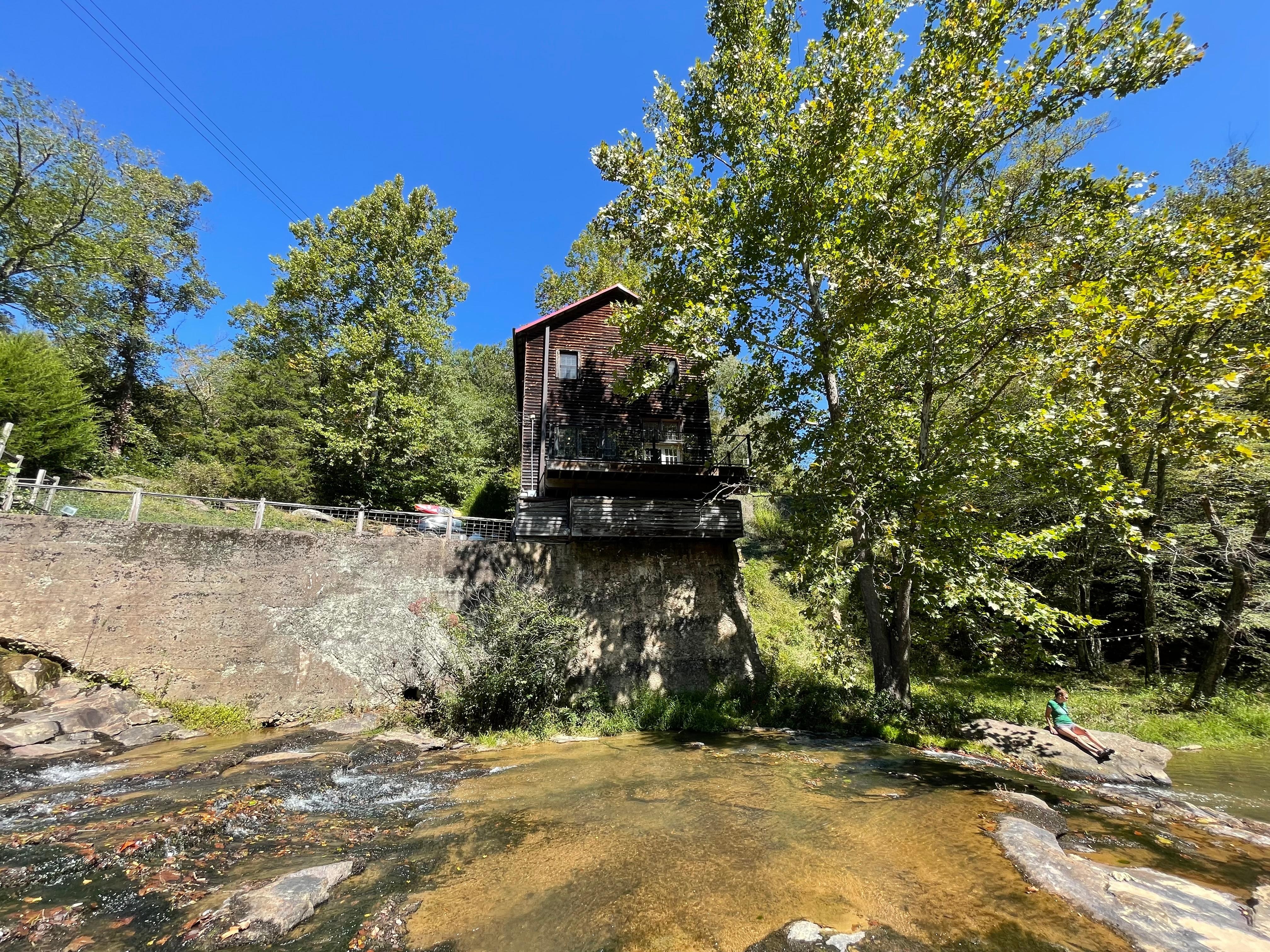 Drink up million dollar views and the best white noise of your life at our creekside gristmill with a private waterfall! Perched atop a 10' Cascade on the Hanging Rock Scenic Byway, the c.1881 RW George Mill boasts mountain air, a spring-fed creek, hot tub, swimming holes, stargazing, sabbatical-worthy seclusion and reconstruction-era history all in one spellbinding property. Be still, my heart!