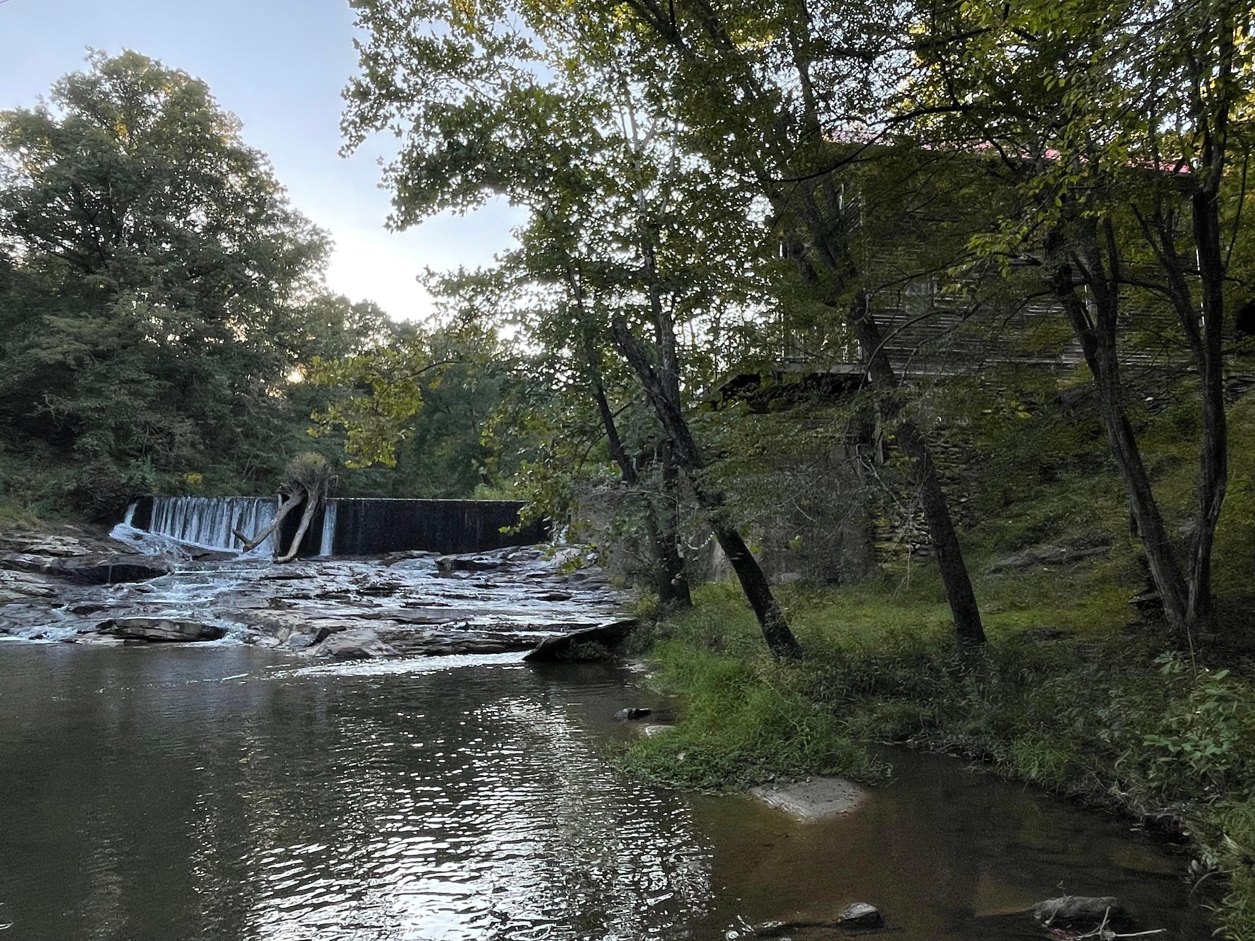 At the top of the driveway, you'll hear the 10' falls before you see them. As you walk into the Mill, be greeted by soaring 12' ceilings, & modern industrial décor with historic accents. Pass through the glass French doors onto a spacious deck for jaw-dropping unimpeded views through glass railings of the falls and pools below, tree tops, and the walking path on the property. You'll feel a change in the air-- the crashing of the falls fills each breath with a charged, rejuvenating energy. Honestly, the space is fiercely beautiful and try as we may, we just cannot seem to do it justice in words.