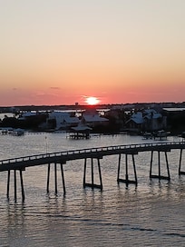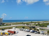 Condo has water views on all sides of top floor unit. Sit on front balcony and overlook gulf and on back balcony and look out at balcony. Water views from all rooms. Complex has 2 pools and access to both gulf and bay. Bring your boat! Place for boat and trailer. There is a $50 per day fee for the boat with a $300 weekly fee this covers both the boat and the trailer. There is also a $50 per vehicle charge for a parking pass this covers your whole time of your stay. They like for us to try to limit it to two cars per unit. Unit is a 3 bedroom 2 bath where one bedroom has a king bed, one has a queen and one has 2 queens and there is 2 twin mattress (one chair that has a pull out twin and one hide a bed).