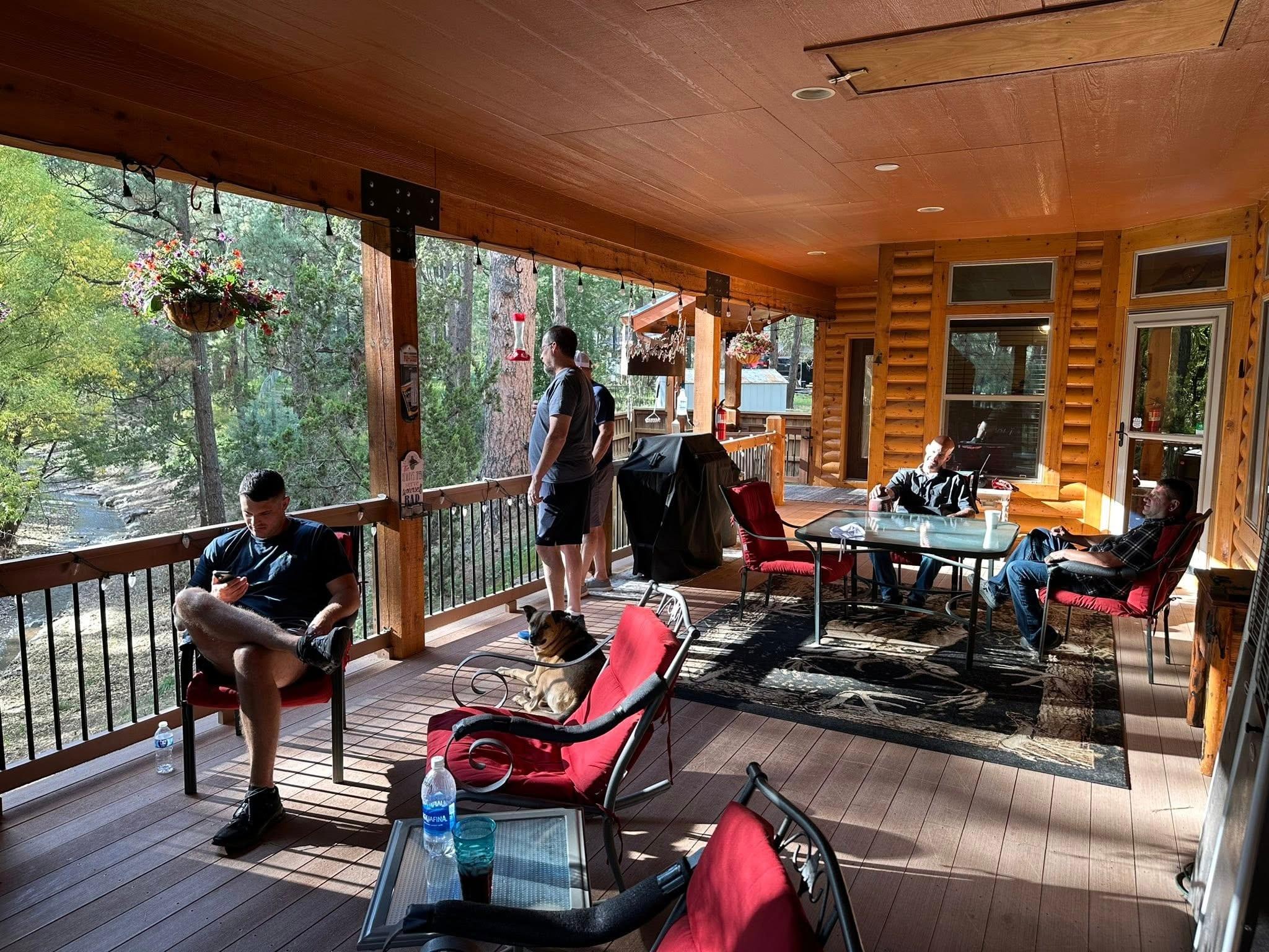 Very Clean 2732 sf Log sided Cabin with Nice Yard, Creek in backyard, Quiet Street no traffic great for kids, 4 bedrooms (2 king beds & 2 Queen beds)Also has Full Hook up for RV (Elect, Water, Sewer) 500 sf upstairs loft with Couch and 2nd 1/2 Bath for additional Sleeping or play area for kids.