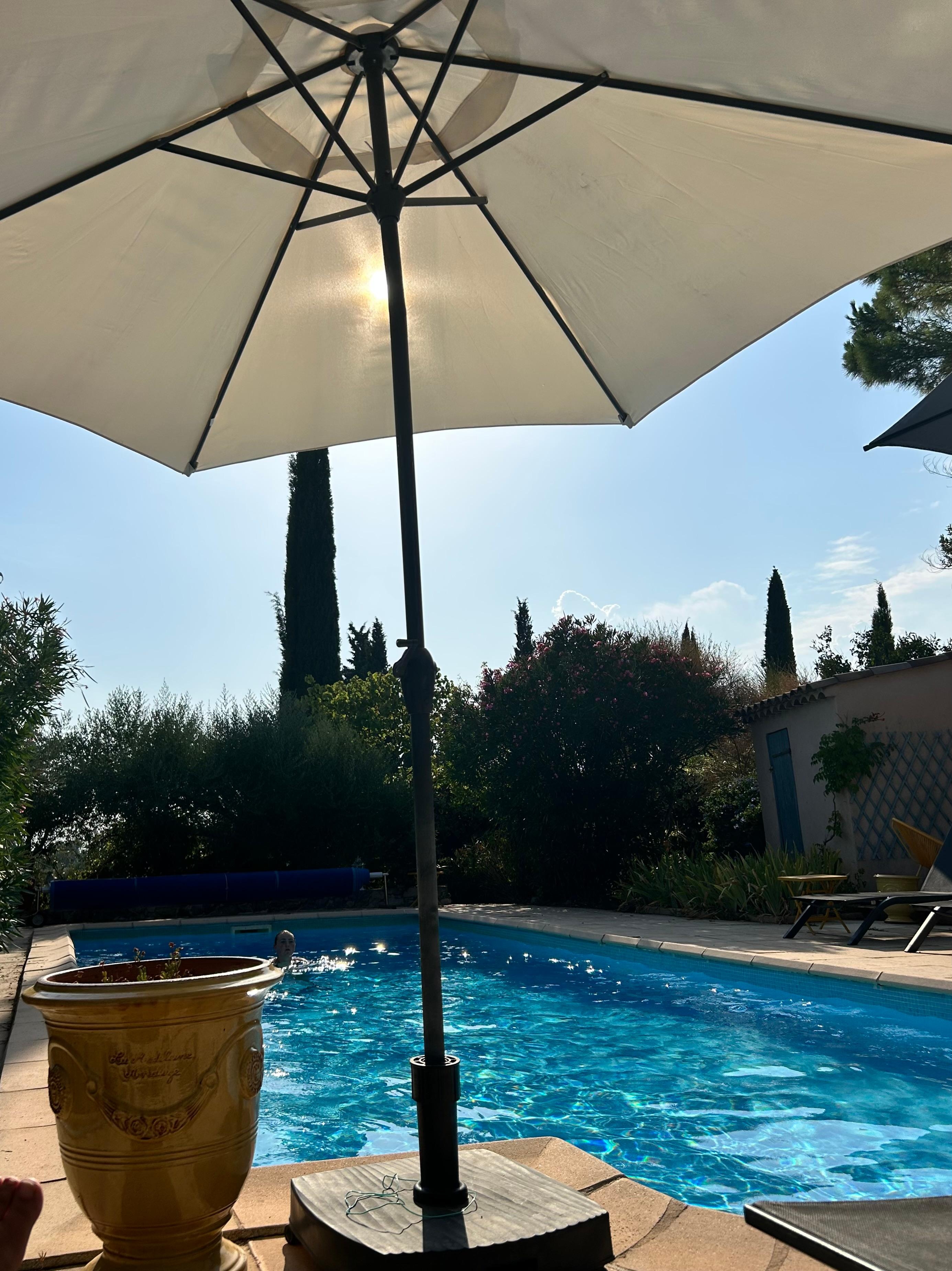 3 bedrooms, 2 with double beds and one with 2 single beds and a child's bed, 2 shower rooms with wc, one with walk-in shower and 2 sinks, dressing room, cloakroom, separate wc, many closets, large terrace with superb views of the Massif des Maures to the south and of Mount Aurélien and the Sainte Victoire mountain to the east. Mobile outdoor kitchen (Westahh by Lacanche), laundry room, cellar, small annex house, 10m x 4m mosaic swimming pool with protective barrier for children, hammock, pétanque court, badminton net, honeysuckle arbor with Salernes ceramic table , lots of little corners where everyone can isolate themselves, 6 sun loungers, 3 parasols, 7 tables, pretty garden with olive trees, one of which is 300 years old, cypress, maritime pine, mulberry plane tree, fig, medlar, pomegranate, arbutus tree, mimosas, lavender, jasmine, rosemary, lilac, Judas tree, oleander, agaves, Mexican orange tree, etc. Very calm, 2 steps from the village. Nice view of the Massif des Maures.