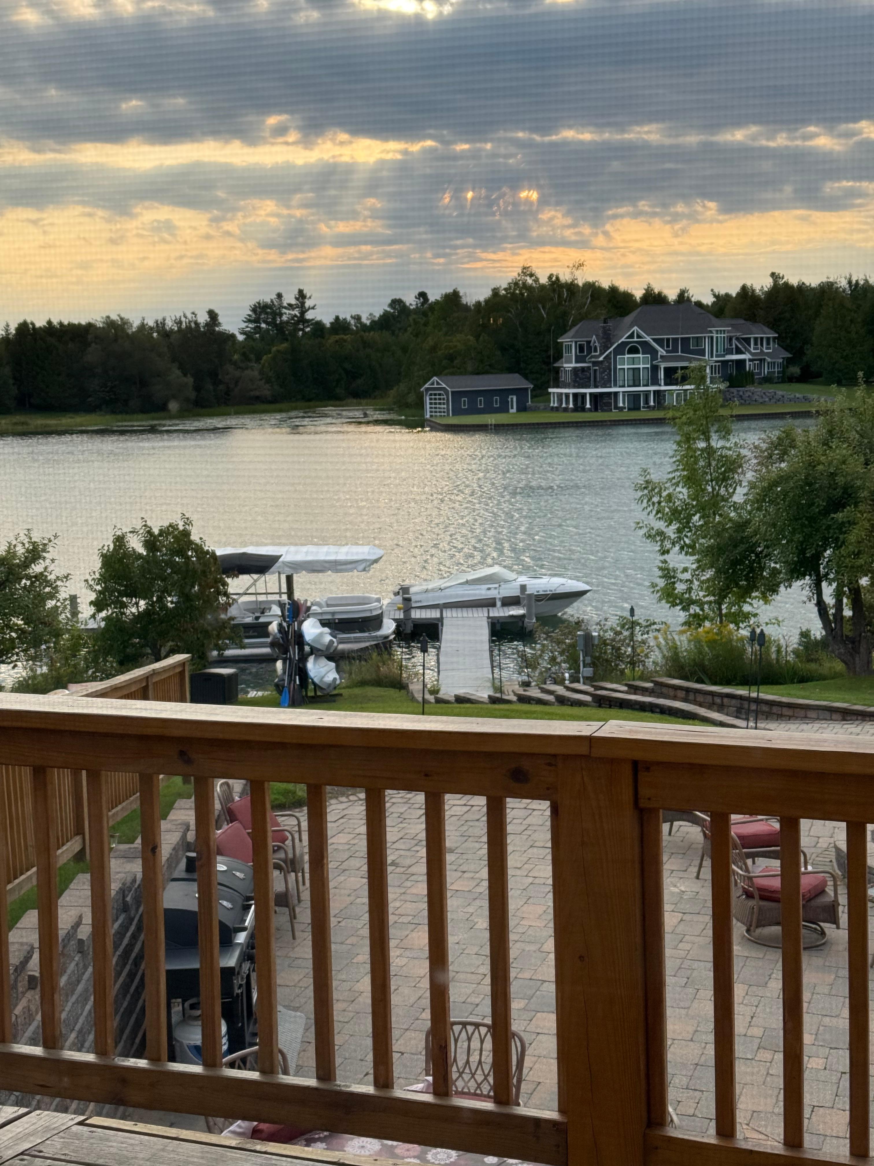 Wake up to a stunning sunrise at this spacious 3-acre waterfront home. Sip coffee on the deck as you consider how to enjoy your day. Perhaps you’ll decide on kayaking, or paddle boarding down the river. If you prefer mountain biking there is a trail very close by or Black Mountain supports some of the best to be found anywhere! When you get back from your adventure, you can wander through the yard’s organic garden and gather a few goodies for dinner. Utilize the grill, and perhaps catch dinner right off of the dock. You could also relax in a patio chair, or play some of the yard games we provide. It’s your time, your choice! For dinner, eat around the campfire, or take a boat to a unique local restaurants. For another outing, plan to experience island life for a day—both Mackinac Island and Bois Blanc are nearby, with ferries available to get you there and back. Or can see the Straits from the air as you drive over the Mighty Mackinac Bridge. Closer at hand, you could boat down Cheboygan River, Black River (open to tubing or water skiing just minutes away), or just out to Mullet Lake for a while. A true adventure is the entire inland waterway for an all day trip. Relax and melt into the rhythm of Northern Michigan at your pace! Breath fresh air, refresh you soul, become one with nature. Plenty of wildlife to listen to as you relax, and at night the stars light up the sky. Or everyone can watch a movie, with popcorn on the 70-inch TV. (Xbox for the kids) Sit around a crackling fire pit that is surrounded by comfortable patio furniture at night and roast marshmallows. Sleep well at the temperature of your choice in the central air conditioned home. There is 1 king-size bed in master suite, 1 queen bed in private bedroom, and two double beds in loft area. The next morning, enjoy a traditional breakfast from the comfort of your full kitchen. Other attractive features you’ll enjoy: tile and wood floors, a 17-foot ceiling in the living room. Boat rental options are readily available, and dock space comes with rental of this property. You’ll return to your regular routine fully refreshed and have flashbacks of this amazingly pleasant home. I truly want each and every guest to have a priceless experience here. Getting ready to rent this home as a perfect summer vacation getaway. Rental listed on number 1294722, reservations made directly thru VRBO.com