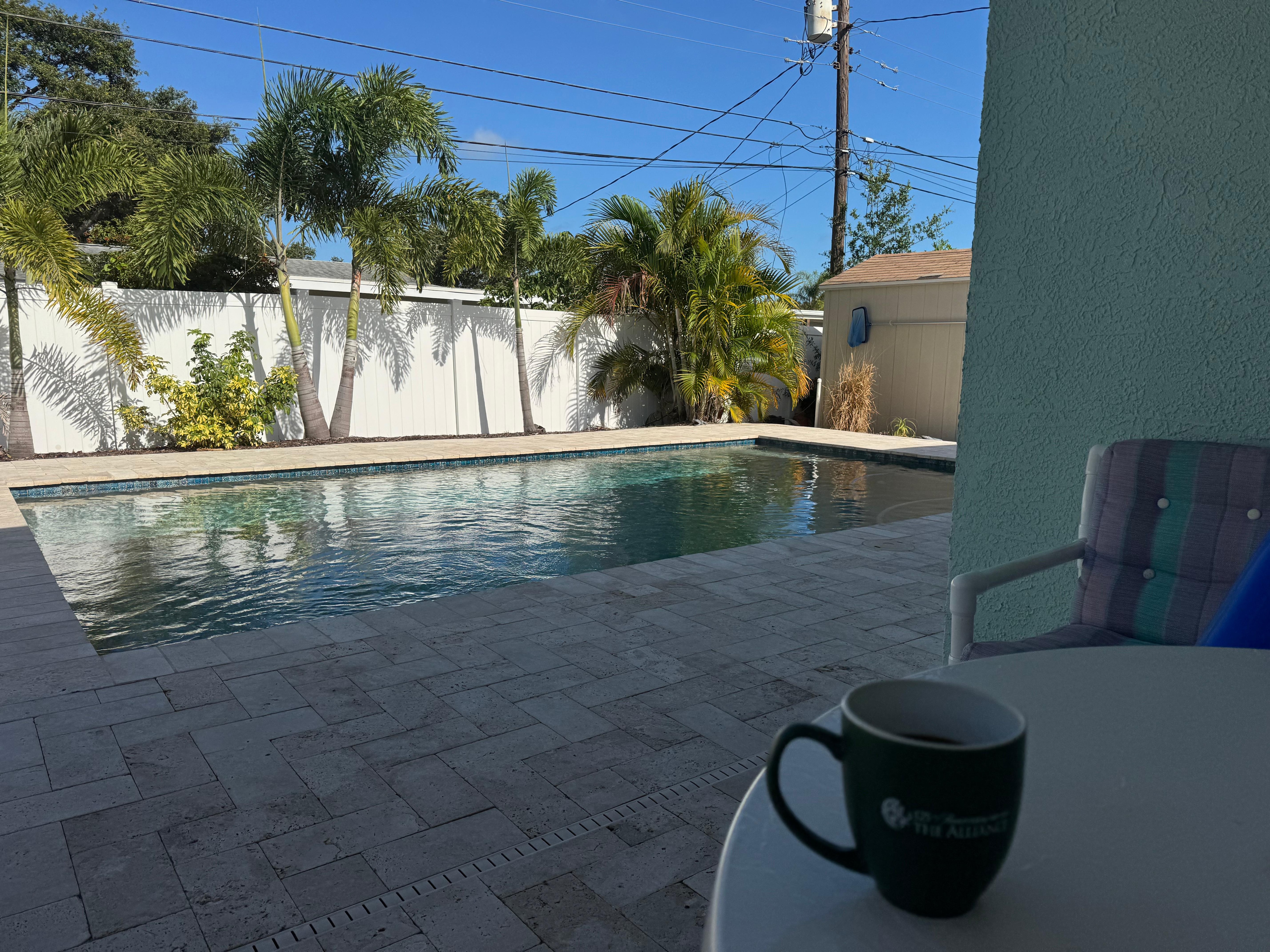 This was our third year at this wonderful house. The heated pool was used almost every day of the month. The backyard has plenty of chairs, a grill and two tables. We ate at the patio table most of time. The house is well stocked. All the appliances operated to perfection including the washer and dryer. The 3 beds are very comfortable, and the 2 full baths made it easy for a couple of visitors to get ready in the morning. The neighborhood is pretty quiet and the location to the beaches, shopping and restaurants is very convenient. Scott is a great host and responds very quickly to all communications.
