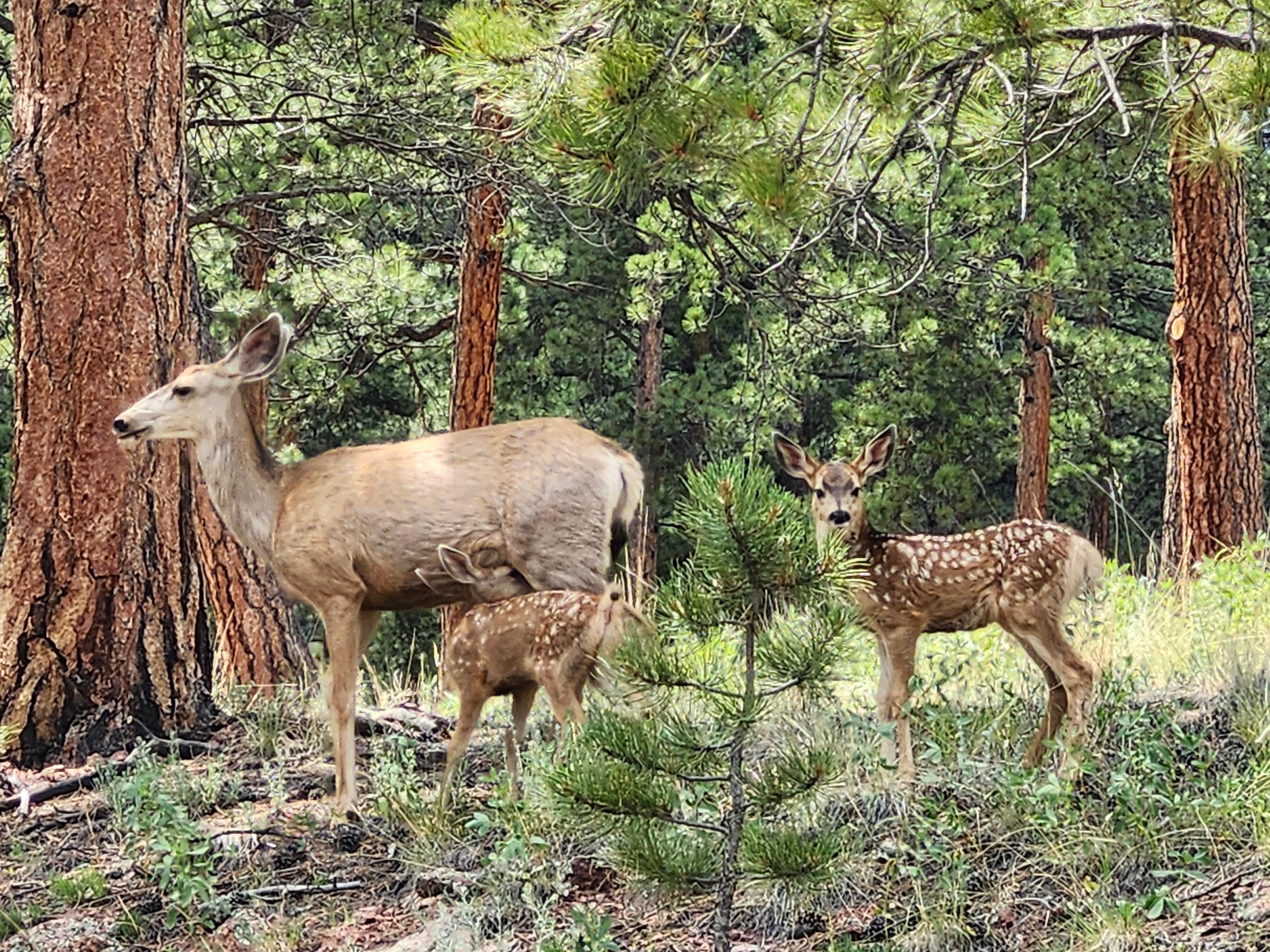 THE GONZNAGEL GUESTHAUSE HAS BOOKING DATES AVAILABLE MID-AUGUST THROUGH OCTOBER (weather permitting) for four+ night stays in this beautiful mountain home. Book your stay now before the opportunity slips away. We also host weddings, reunions, birthdays and other celebrations, with special prior arrangement. Remember: We have fiber Internet and cell service--you can work from THIS home!! Or just come for a relaxing getaway and escape the crowds of the city and the I-70 corridor! Plan on a safe adventure here in our mountain paradise, with plenty of hiking and other outdoor activities. This cedar-sided three-bedroom mountain custom overlooks Deer Creek Valley, home to a herd of 160 elk, Great Blue Heron, deer, fox, coyote, several raptor species, and a panoply of birds and wildflowers. Nestled in a Ponderosa Pine forest and surrounded by landscaping and gardens (seasonal), this site serves as a scenic spot for small weddings, family reunions, gatherings of all types--or just relaxing in the fresh Rocky Mountain air. A fire pit, swing set and climbing structure, horseshoe pits, lounge chairs and a gas grill complete the comfortable yard overlooking 280 acres of elk meadow. Close to summer (Evergreen Lake) and winter sports (Summit County), and the best autumn color viewing in Colorado, the Bailey area is known for trout fishing, mountain bike trails, horseback riding, hiking and ATV adventures. Bailey town offers a brewery, winery, galleries and shopping, and the famous Sasquatch Outpost with two new large and furry bipeds! Lush house plants, tropical fish, an extensive library and DVD collection (including children's books and VHS videos), original art, hardwood floors, and a great-room fireplace create a comfortable, homey atmosphere in this modern mountain home. A 6-burner gas range completes the chef's kitchen, part of the great room that overlooks mountain and meadow vistas. A Surround Sound entertainment center upstairs, and an additional ground level family room TV allow cable TV/DVD/VHS/CD/Internet access. The Master suite features a king-size flotation bed and a jetted tub and raindrop shower; garden level bedrooms contain a queen and a fold-out love-seat bed, and a queen Murphy bed. A caretaker on site attends to property maintenance, and is available to answer questions.