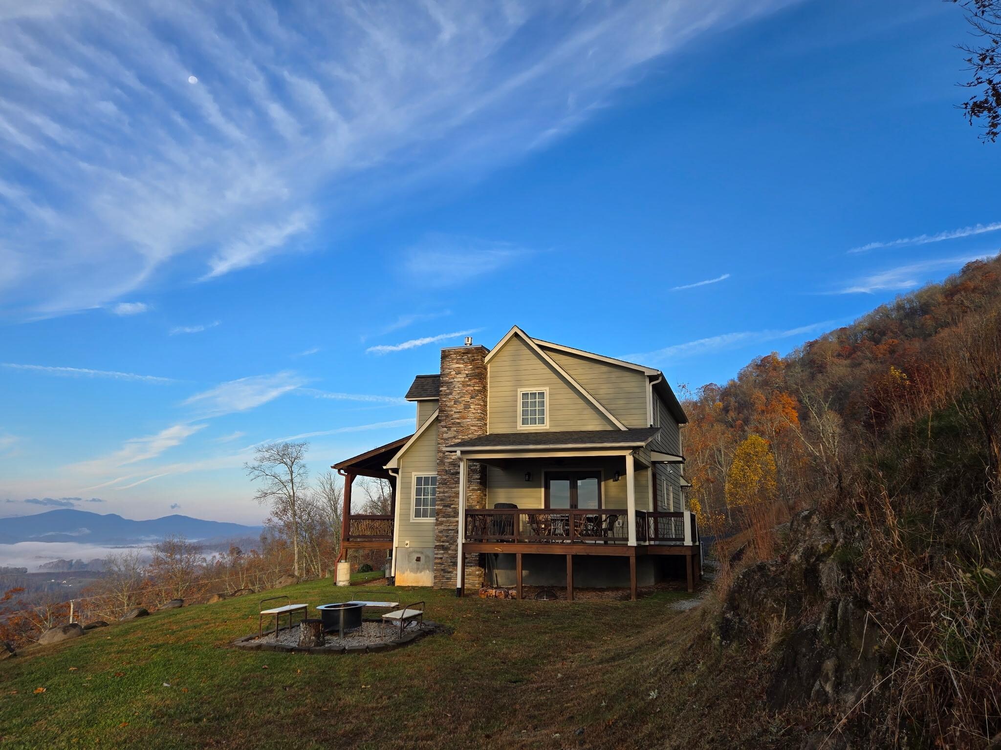 A warm, inviting 3-bedroom mountain cabin, where panoramic peaks and golden sunsets set the stage for a restorative retreat. Inside, a comfy living area invites you to relax with a cozy gas-log fireplace and large windows framing sweeping views. The fully equipped kitchen and adjacent dining space are perfect for gathering over meals and memories. Step outside onto the deck or patio, breathe in fresh mountain air, or continue your evenings at the fire pit, swapping stories under the stars.