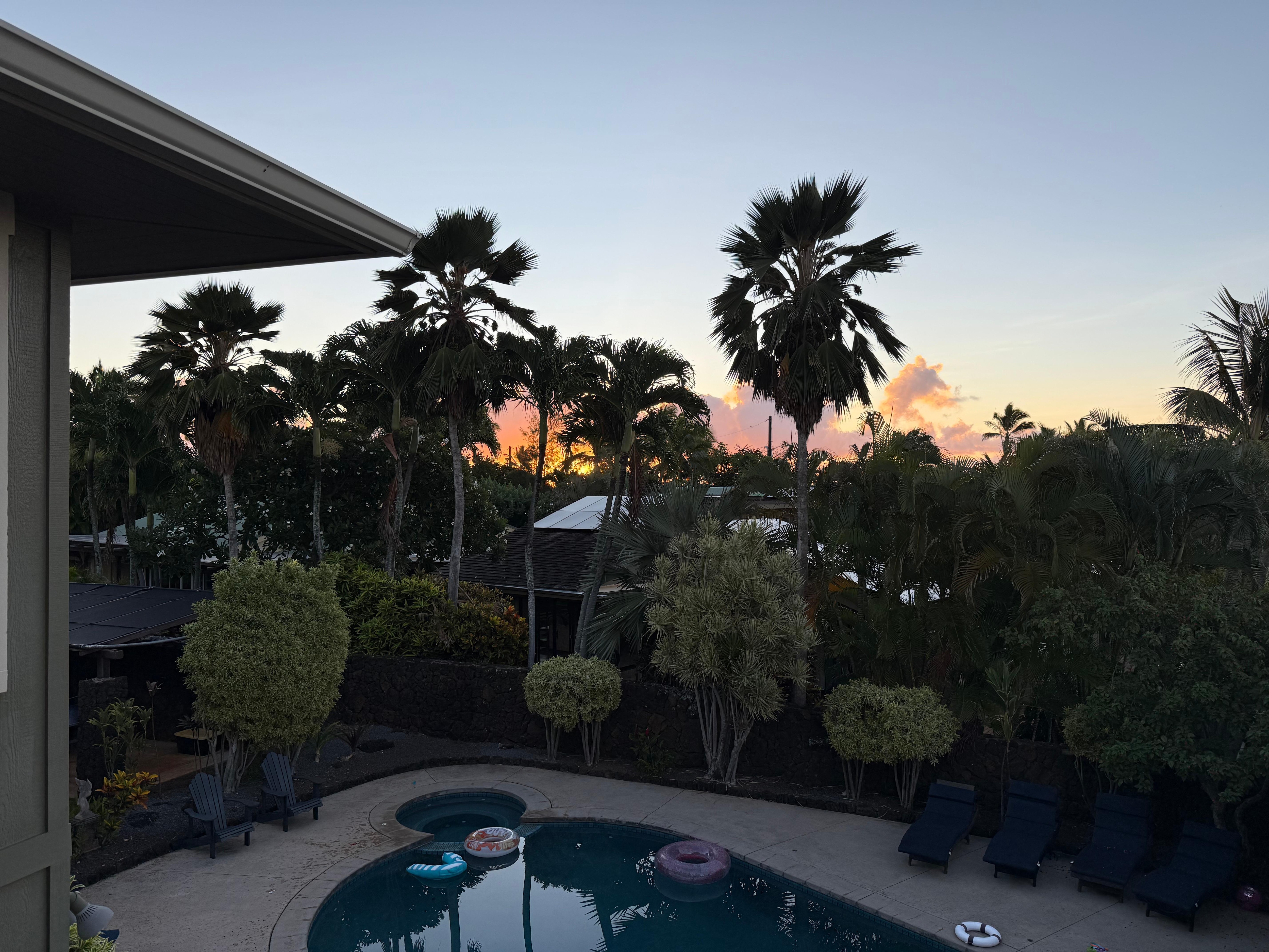 - Beautiful lava rock esconced yard with lawn and tropical garden