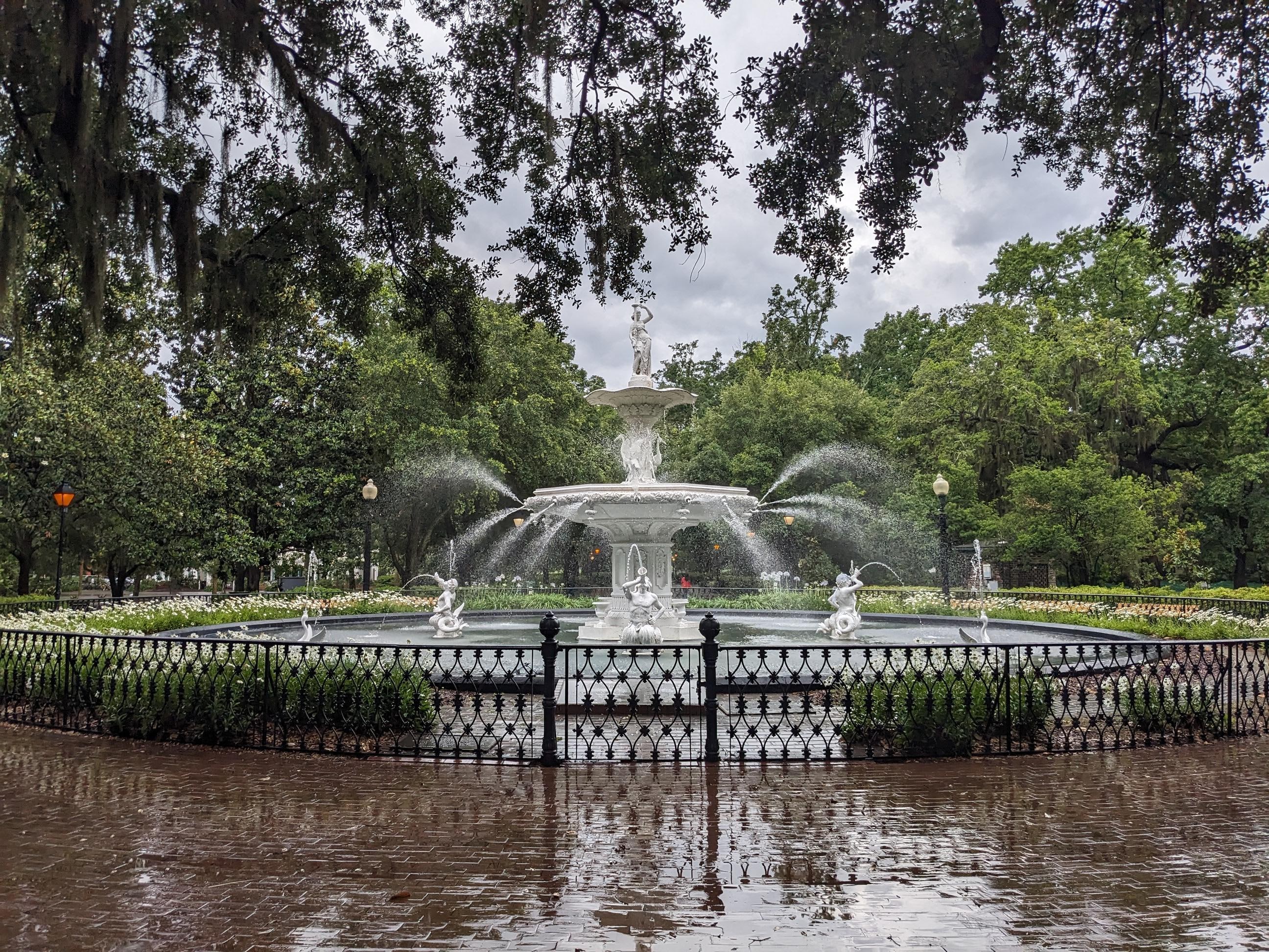 The amazing private courtyard has all you’ll need with outdoor seating, a calming water feature, plenty of lush green plantings, and of course a statue of the ever famous “Bird Girl”.