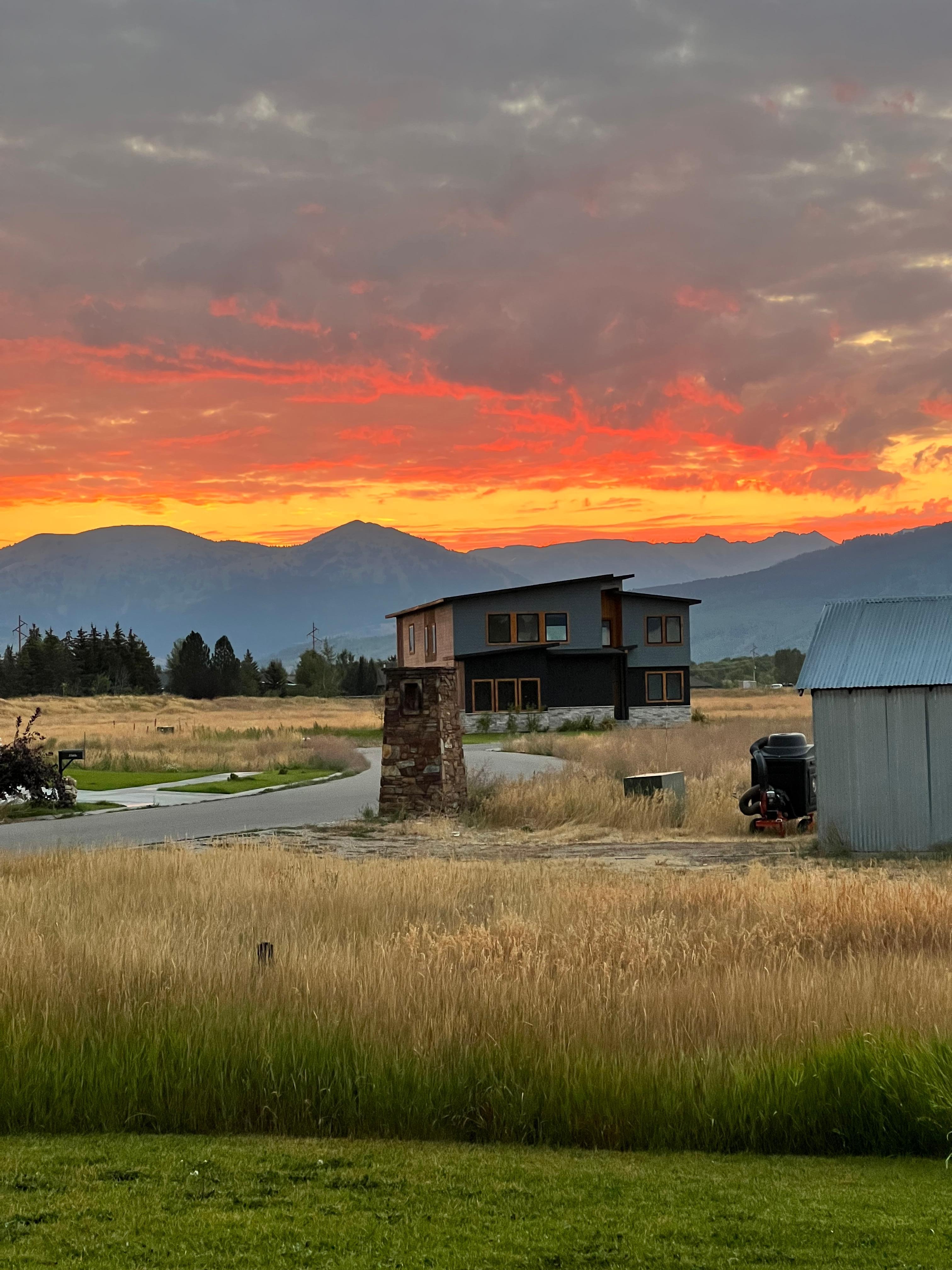 When we built the cabin, we were insistent on a downtown Driggs location, but building sites are scarce. We settled on a location about 1.5 blocks from Little Ave, and 5 blocks from Main St. It's a larger lot which allowed for ample space and lots of landscape. We put most of the windows to the interior of the lot, and planted some large Spruce trees to provide privacy to the nearest neighbor. Downtown Driggs is like a large neighborhood with a mix of older homes, and newer, modern, sometimes eclectic homes. Because it's not a "subdivision" you get a lot of diversity, which is what we love about the downtown area, along with walkability of course. We do ask for respect to the nearby neighbors in terms of quiet hours and friendliness.