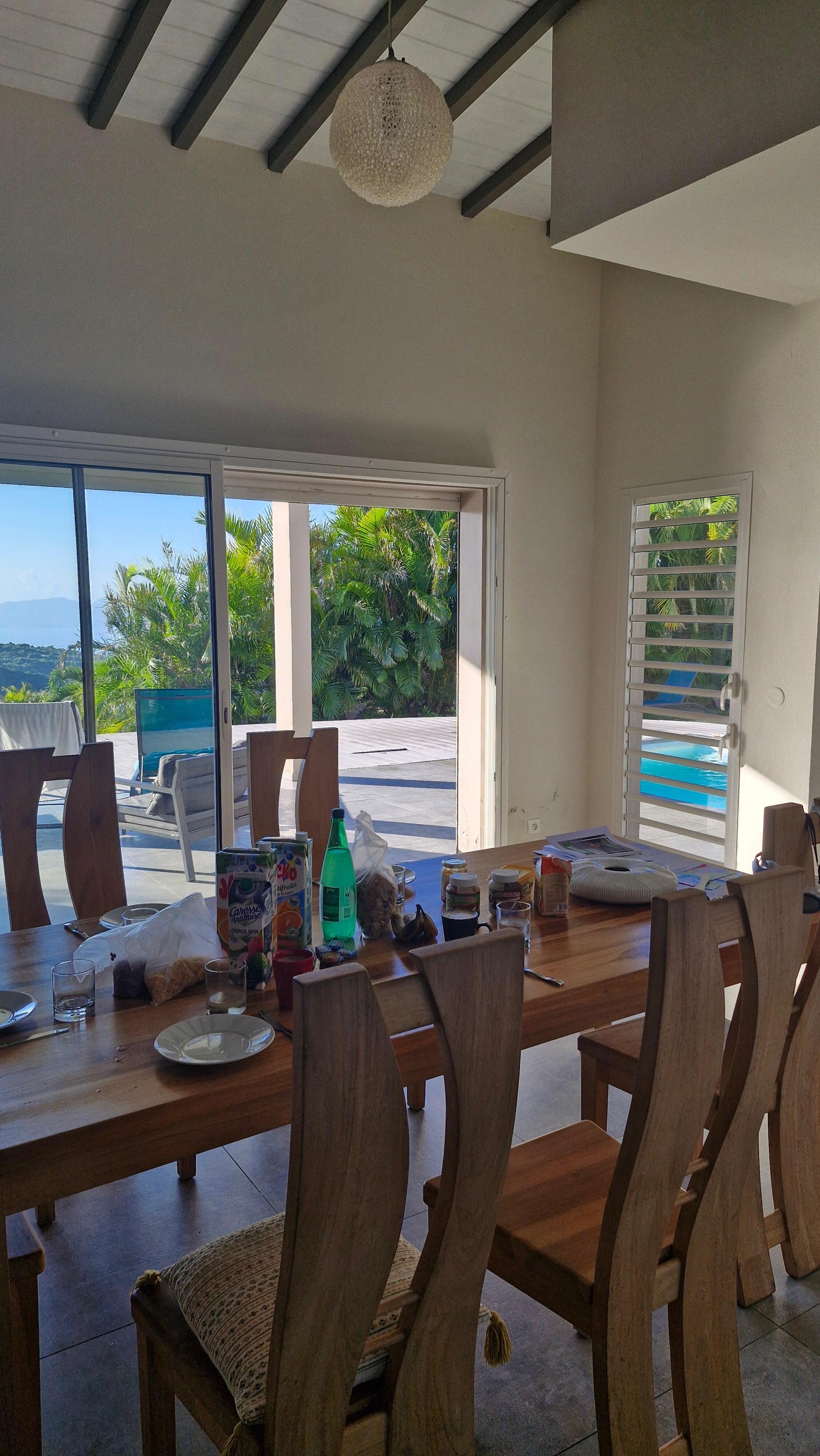 Come stay, on the heights of Bellefontaine, in a magnificent villa with clean lines where space, comfort rub shoulders with an exceptional view, on the Pitons of Carbet and the Caribbean Sea.