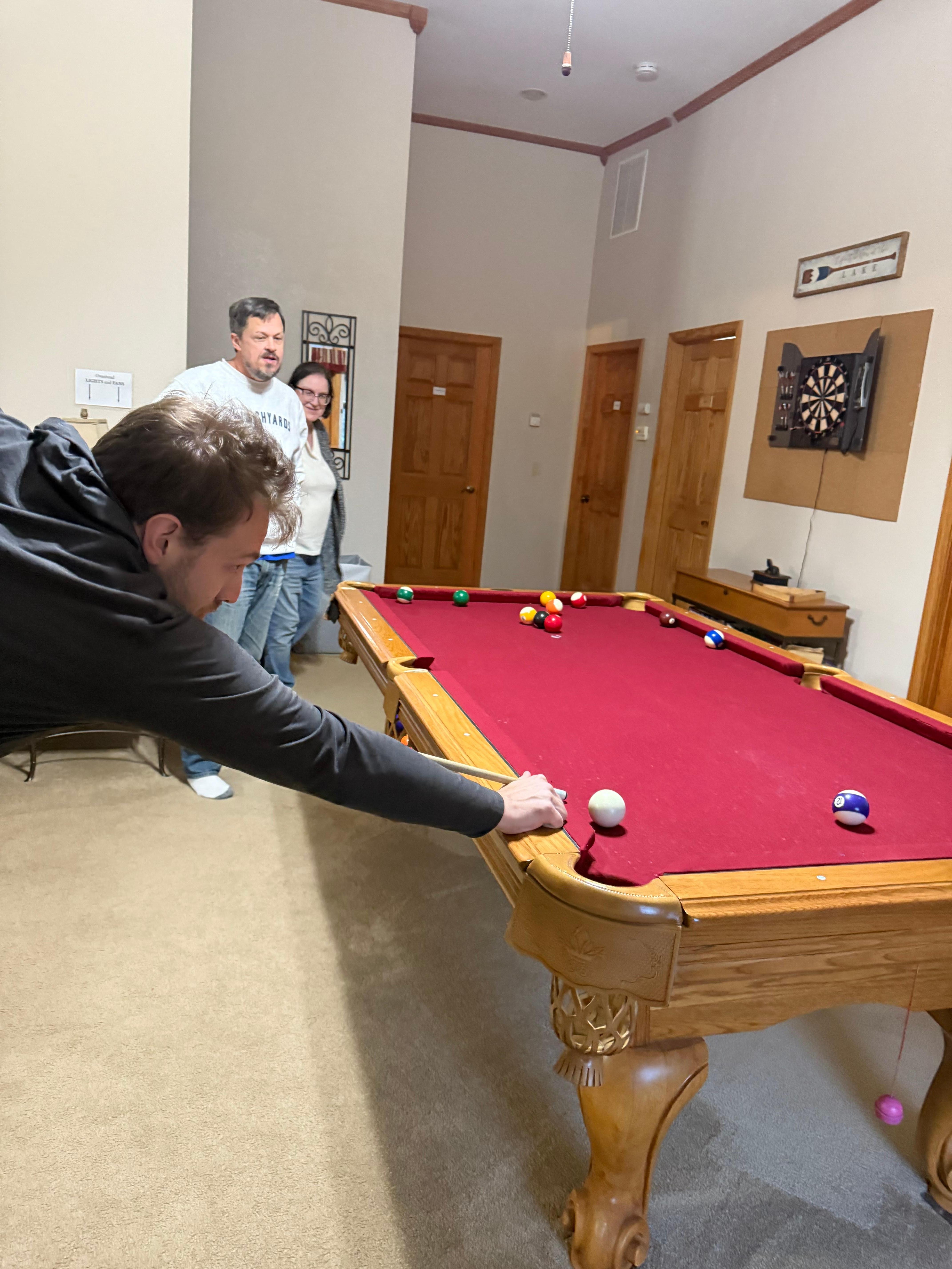 Enjoy a large great room with vaulted ceilings and a stone fireplace, a theater room, pool table, dart board, dining area and a small kitchenette. There is more seating outside on a huge covered patio, with a grill, dining table and chairs. Large backyard leads down to the cove. We have kayaks, a bonfire pit, corn hole and horseshoes.