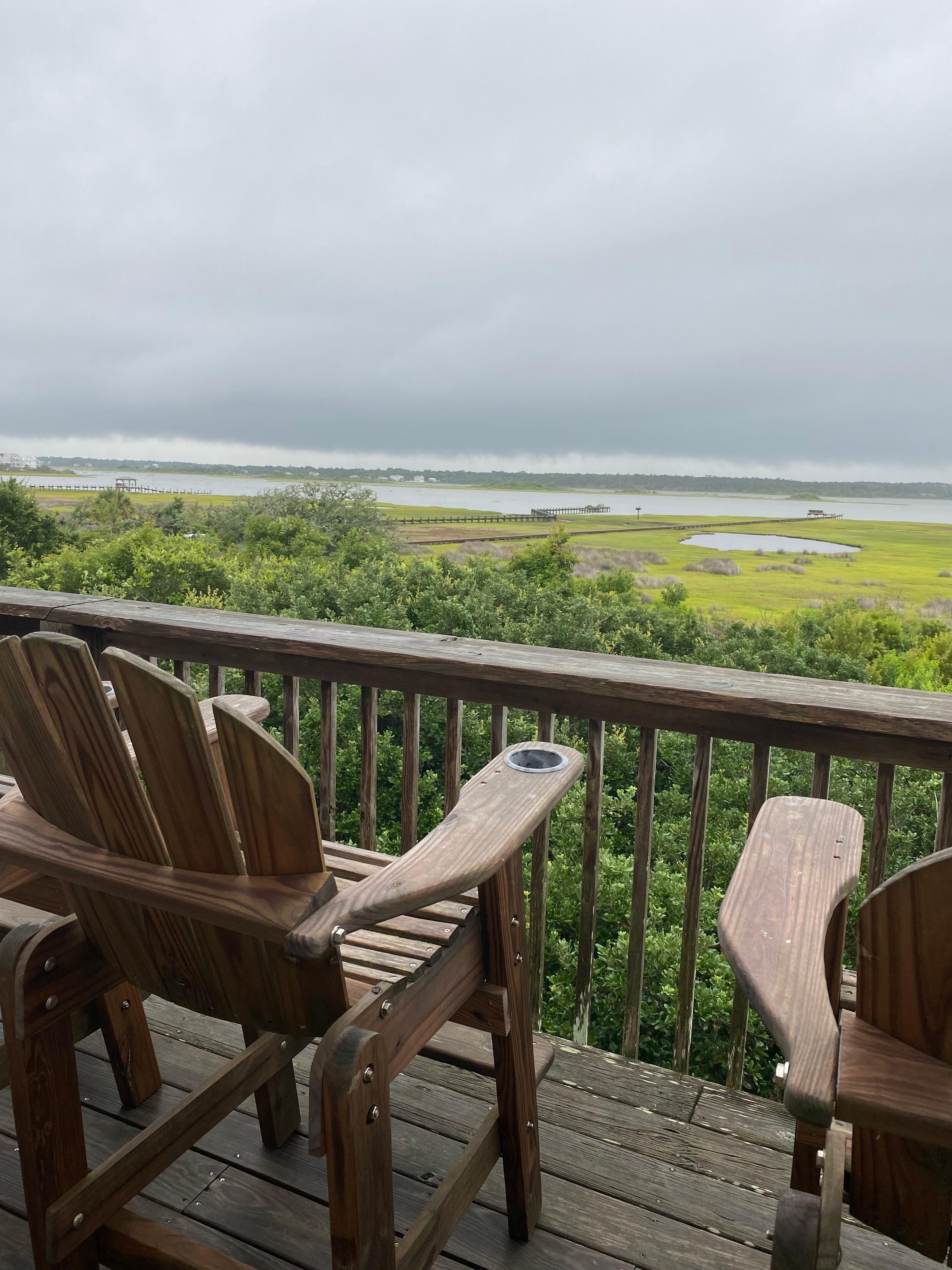 Two bedrooms each with own full bath (lower level) and half bath next to third bedroom (upstairs). Huge screened porch with views of both the ocean and the waterway.