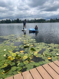 Available toys: Pedal boat, paddle boards, kayak, life jackets, towels -everything you need to have fun on the lake. Relax in the hot tub watching eagles fly over head, bask in the sun on the floating dock. Sit by the campfire & roast marshmallows at night.