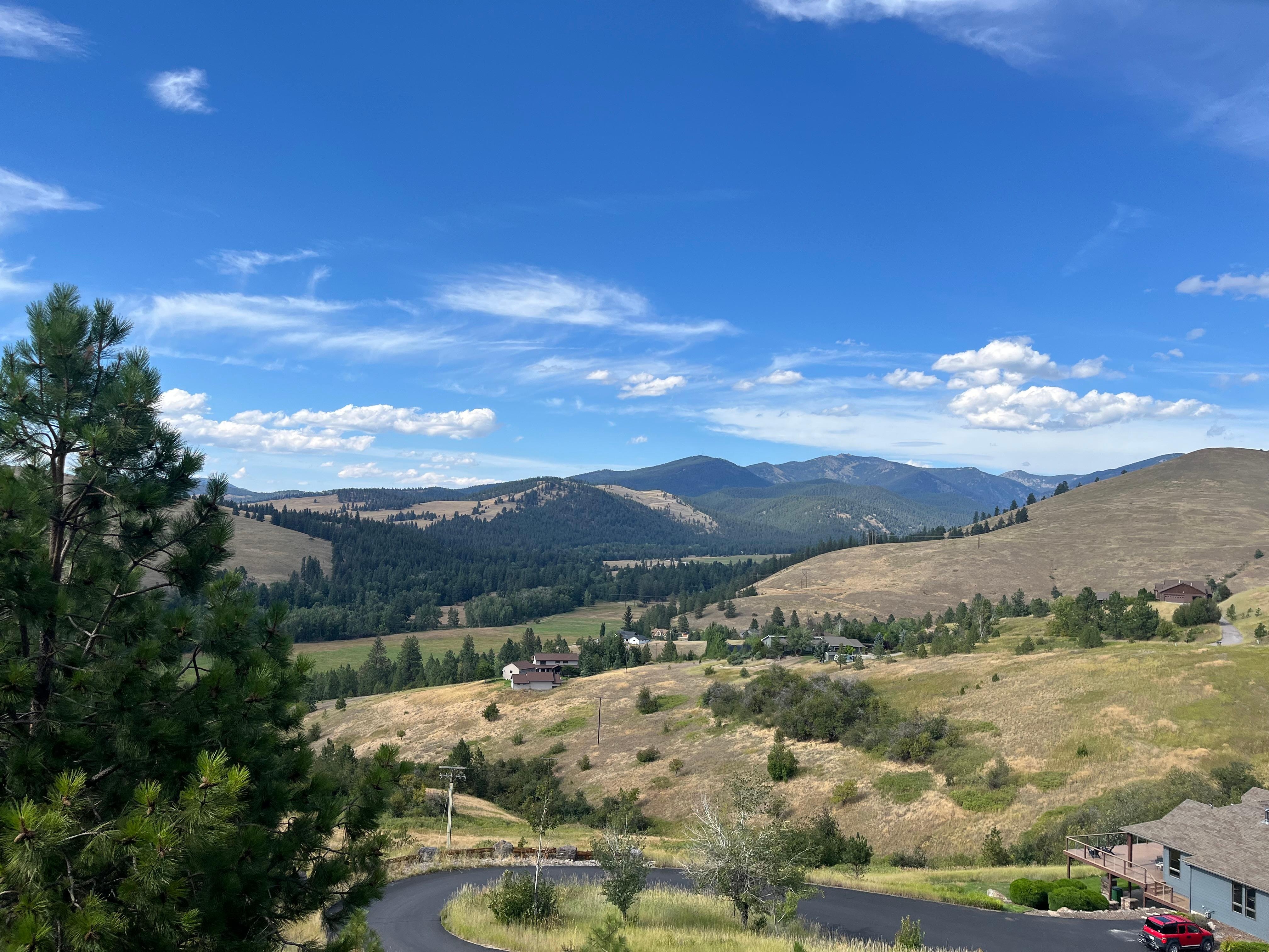This custom-built 5,000 sq ft house located in Missoula in the beautiful Grant Creek Valley sits atop a ridge overlooking a splendid forested valley with a direct view north of Snowbowl ski area, local ranch land, and the elk preserve. The house sits on five acres with no direct neighbors and has walking trails outside its front door and National Forest trails within a five-minute drive. Downtown Missoula and Reserve Street are a quick 5-10 minute drive for entertainment and shopping. This property is a quiet peaceful getaway just minutes from town with clean fresh air and minimal noise. There is a large front wrap-around deck and a backyard/barbecue fenced-in garden area for dining alfresco. The front yard is large and flat for kids to play on with a long flat paved driveway and easy parking. There is amazing sunshine from early morning to sunset with stunning views of the Big Montana Sky.
