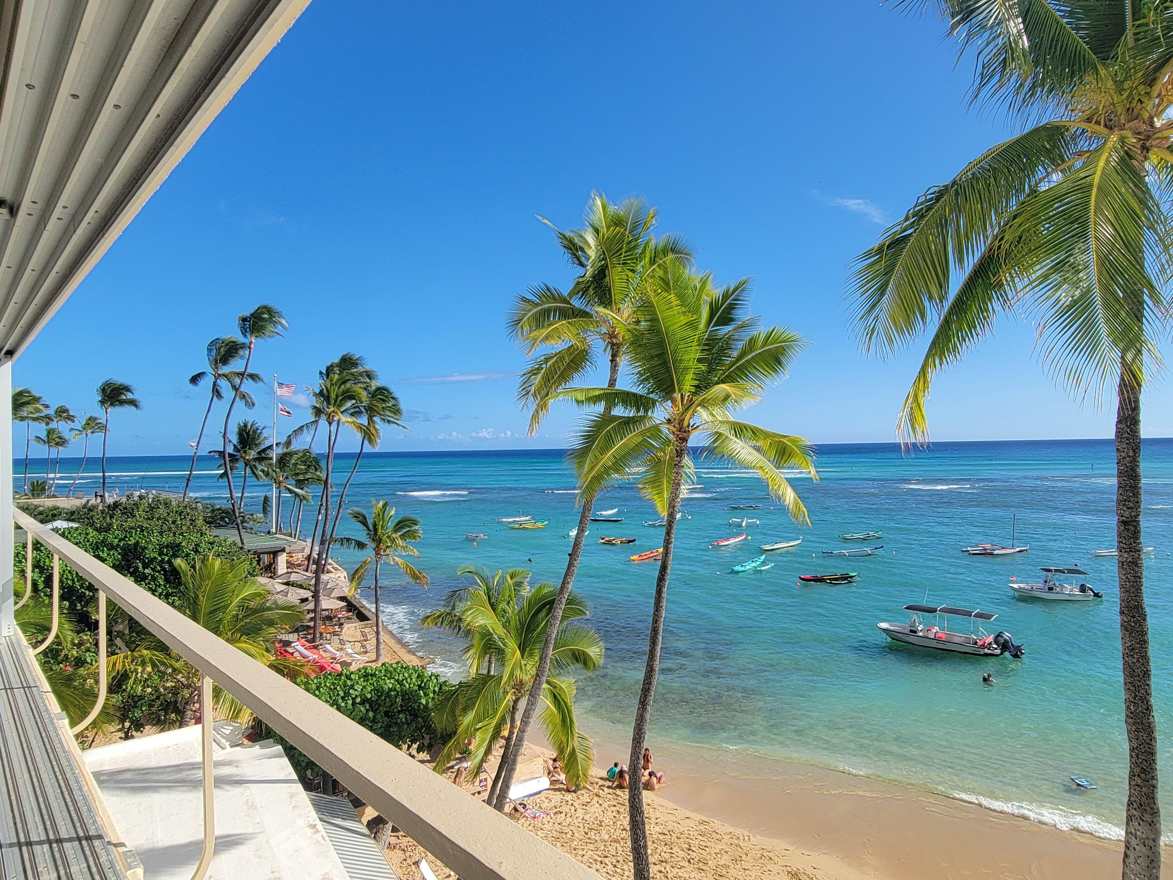 Fall asleep to lapping waves on a quiet corner of Waikiki in this beautiful modern haven. Located on the sought after 3rd floor of the famed Colony Surf on the Gold Coast end of Waikiki. Clean and modern remodel in 2018: all new cabinets, appliances, furniture and fixtures, high speed WIFI, 55" big screen TV, gas range, microwave, large refrigerator with ice maker. Sparkling clean unit with a 25 foot wide panoramic view of the ocean right out your window. Enjoy the sand just below your window with provided beach towels and chairs. Award winning Michel's restaurant on-site. Includes one parking stall. Walk to Waikiki, the Honolulu Aquarium and Zoo, and Kapiolani Park. Unit No. 302.