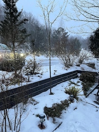 In the winter, the snow blankets every surface, and glistens during the day. It is fun to watch the skiers go up and down the slopes, too!
