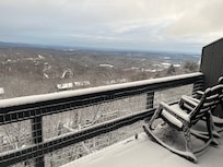 There are three decks. The back decks have views of the valley ringed by other mountains. It is said on a clear day you can see 85 miles, to the Catskill Mountains in New York and to the east, the High Point monument in New Jersey. The front deck is furnished with a picnic table, chairs and a gas grill.